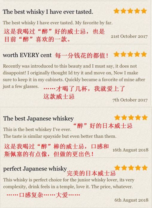 在国际知名威士忌网站 masterofmalt上,众多酒友给这款威士忌打出了 5 星好评: