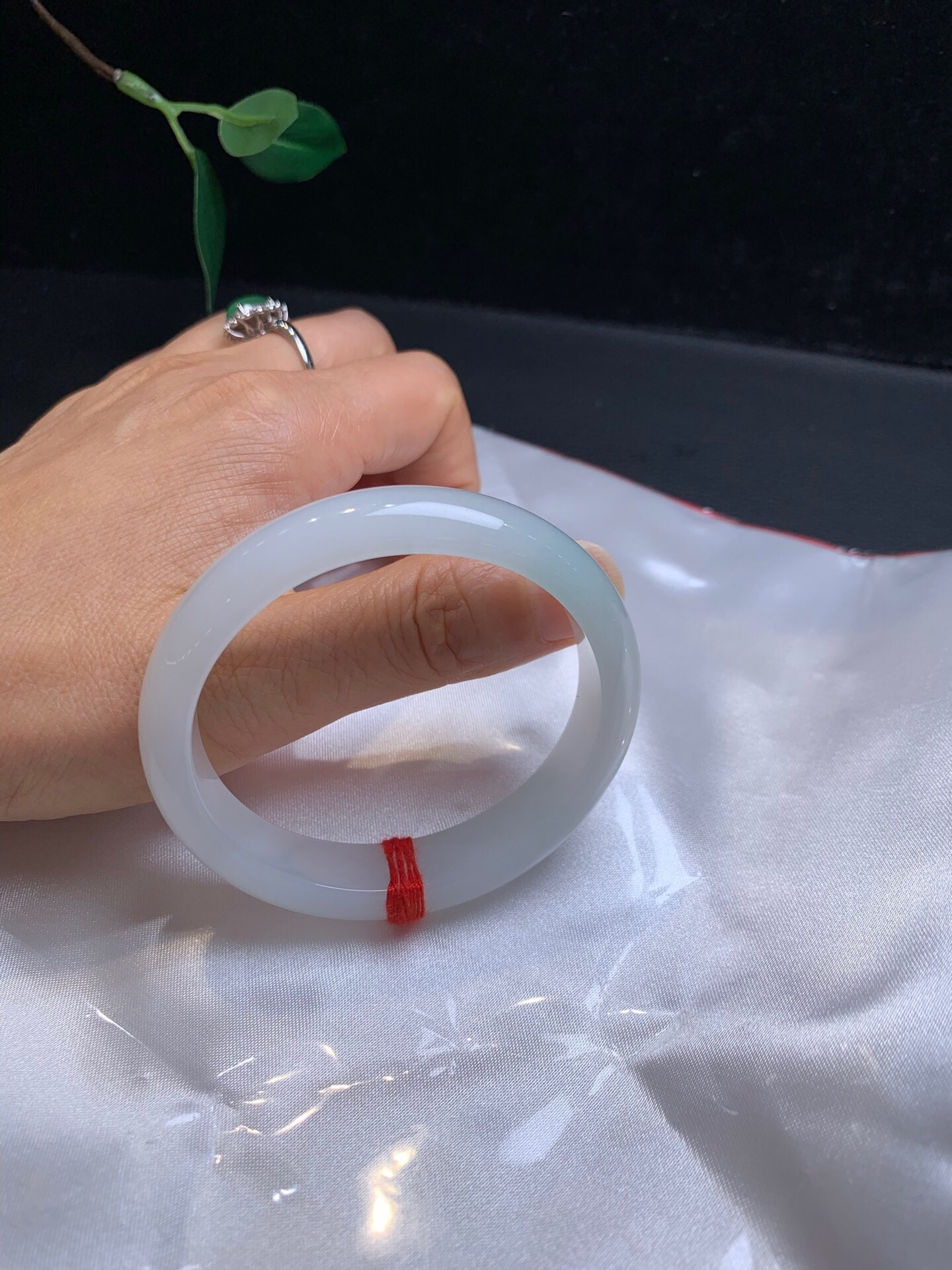 620353,54贵妃手镯,条形好,整条底子细腻干净 有一节浅绿底,清爽甜美
