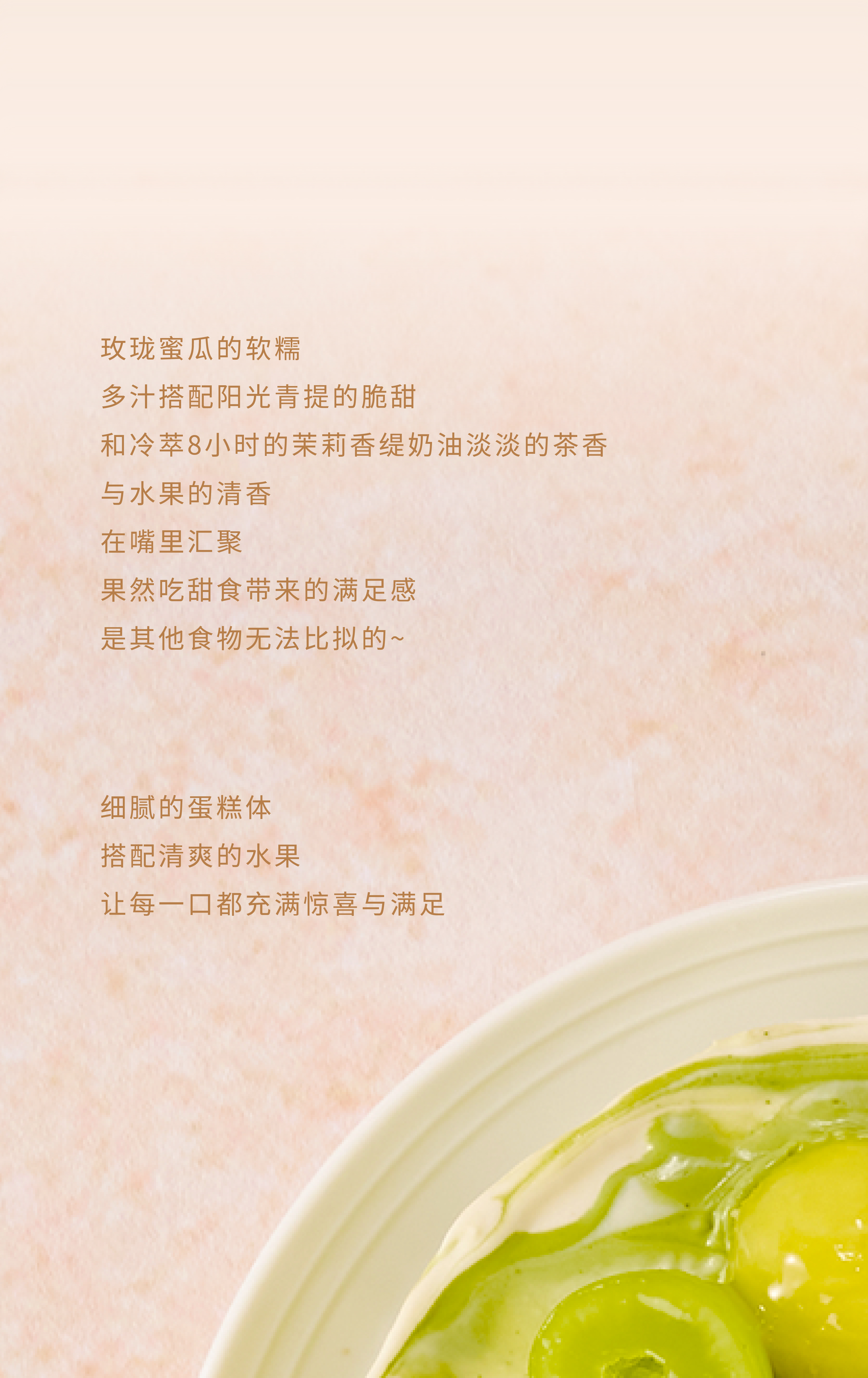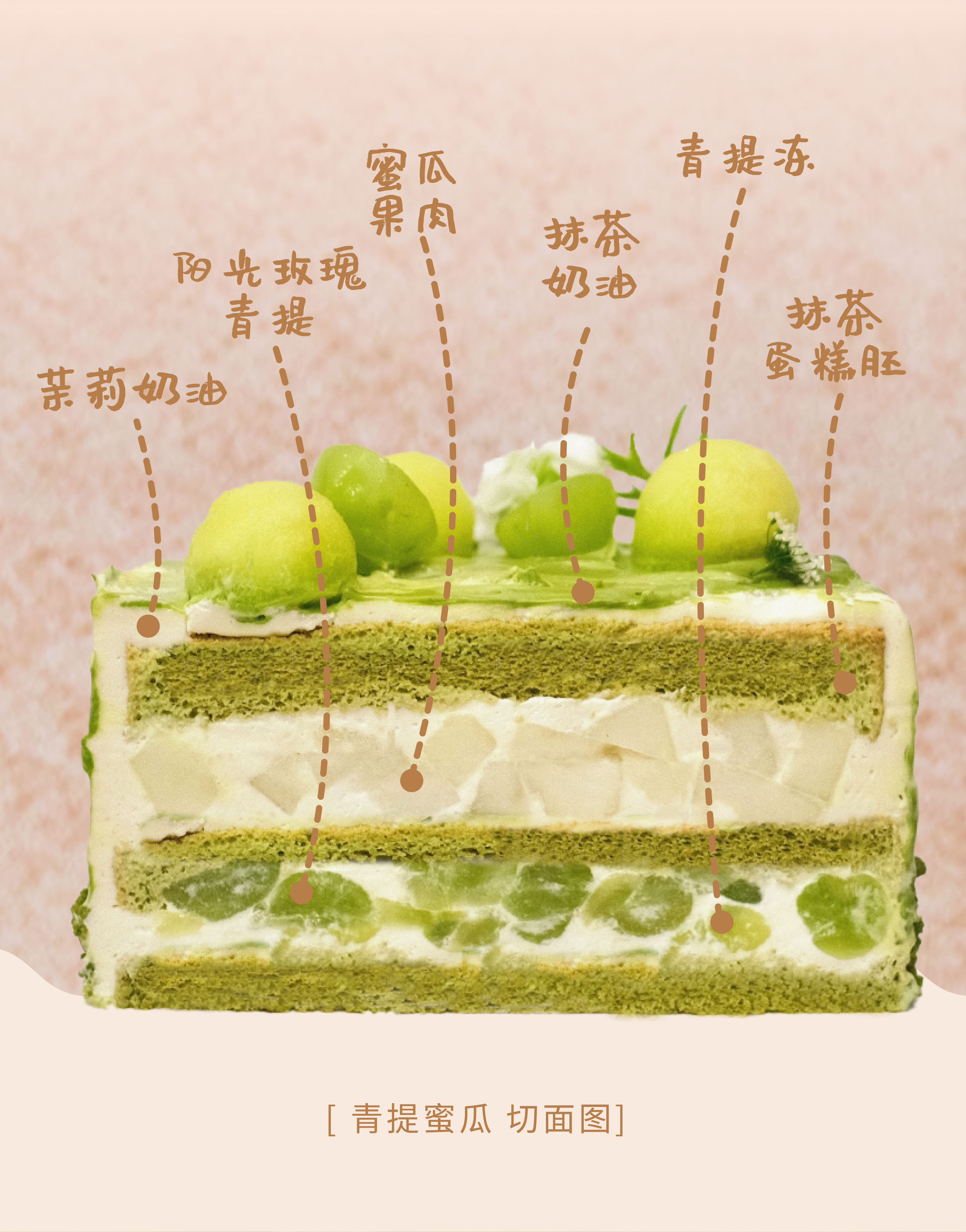 【青提蜜瓜蛋糕】阳光玫瑰青提+玫珑蜜瓜+伯牙绝弦茉莉雪芽奶油+表面少许抹茶奶油