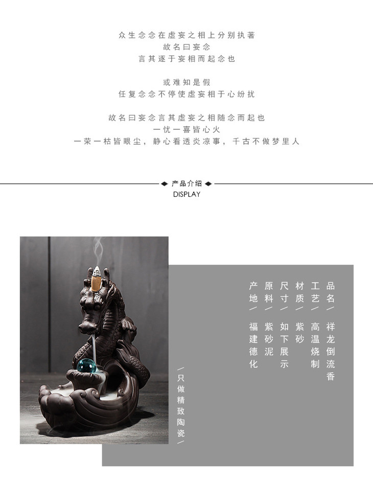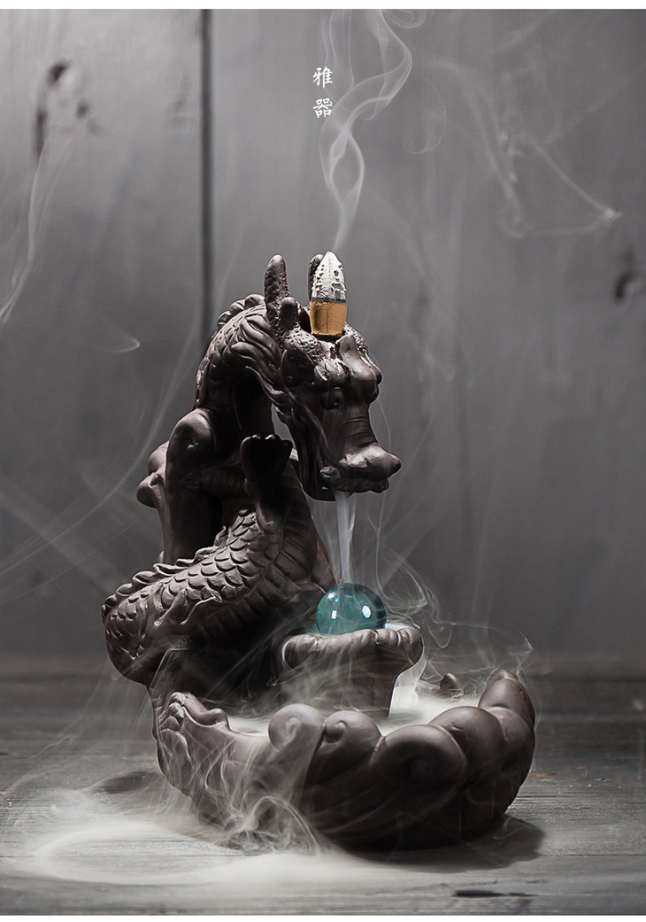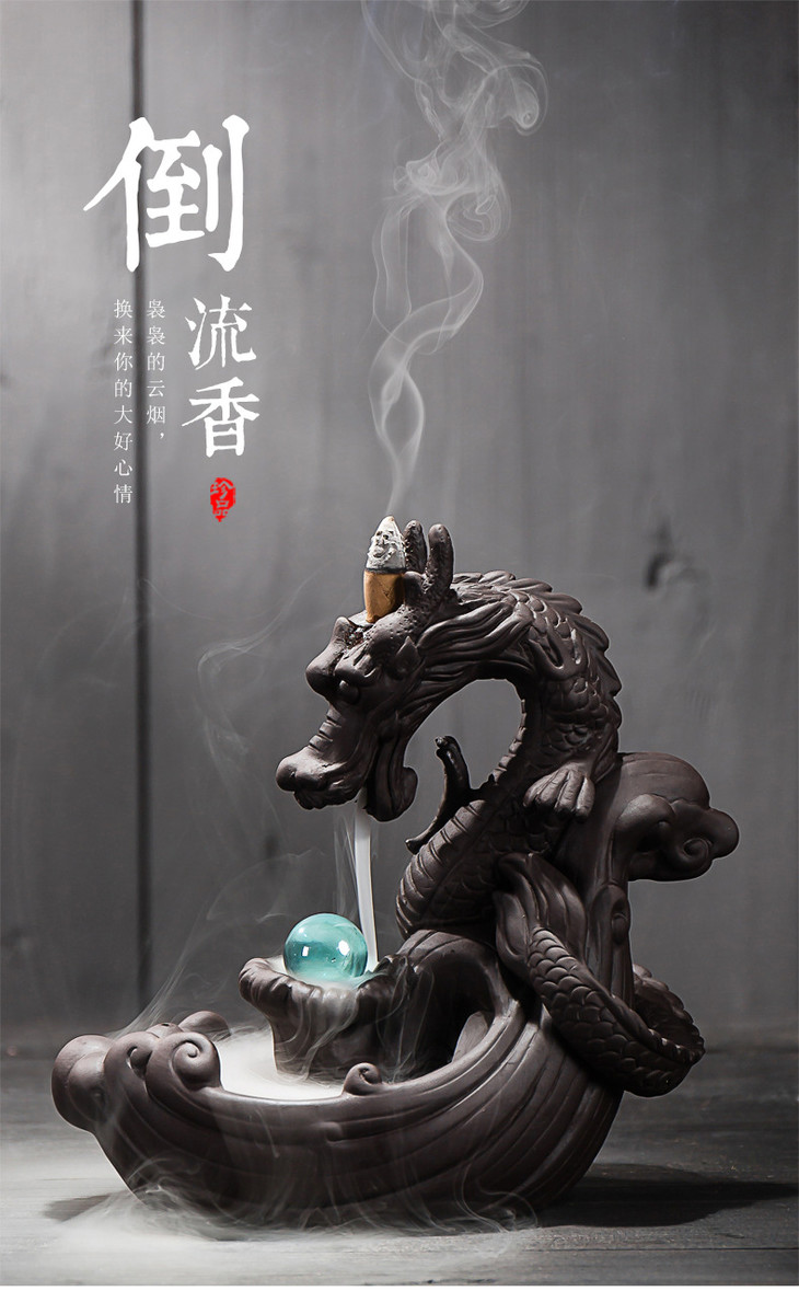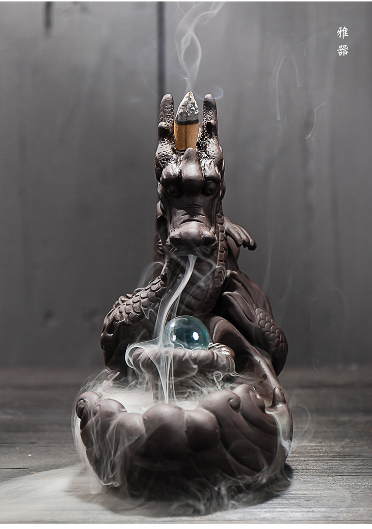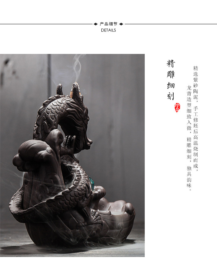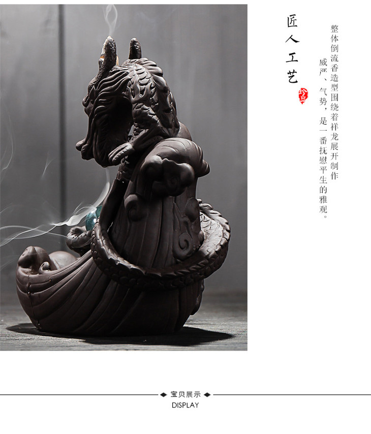 【家居摆件】*大号紫砂龙烟倒流香炉茶道摆件 创意香炉龙家居摆件香道