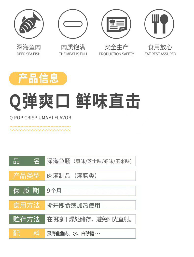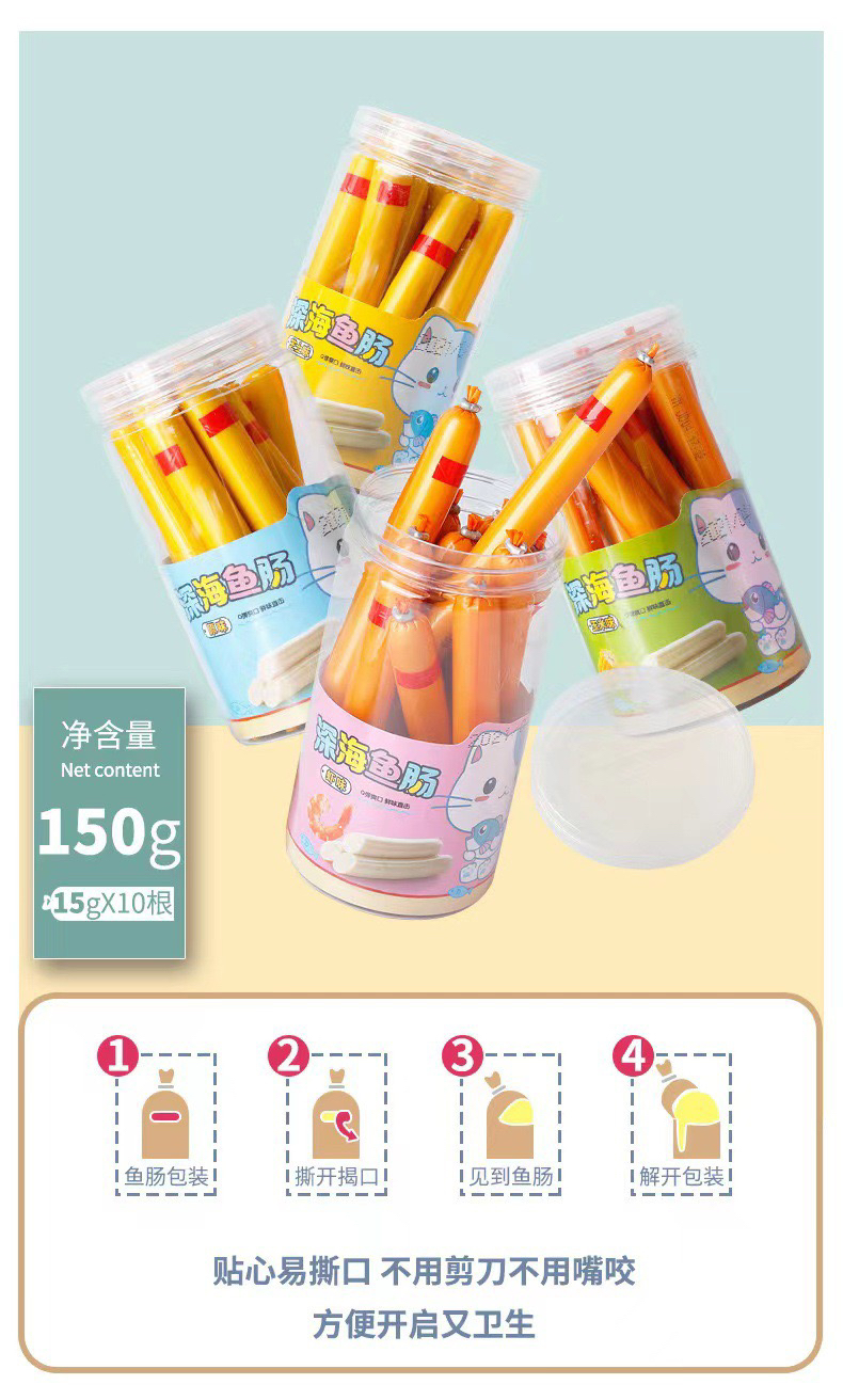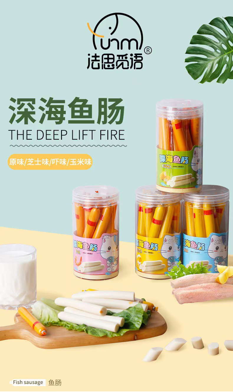 法思觅语鱼肠玉米味鳕鱼肠虾肉肠150g10支罐装宝宝鱼肉肠