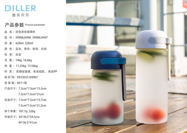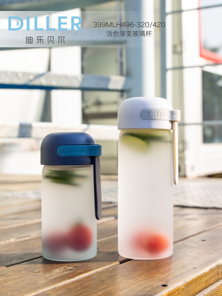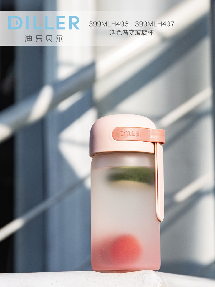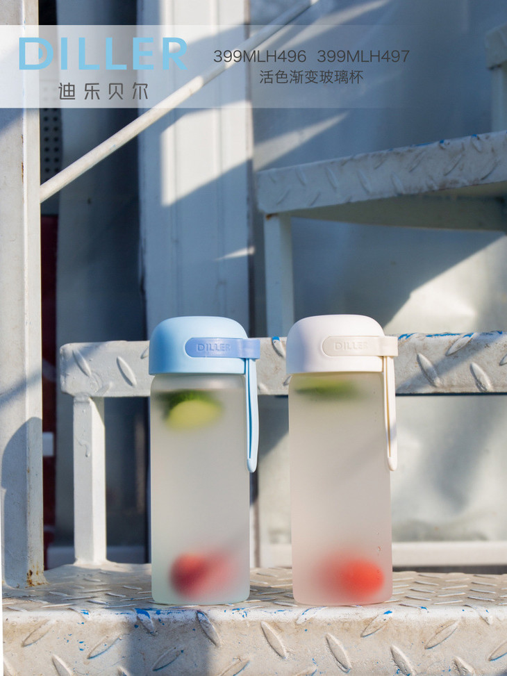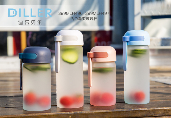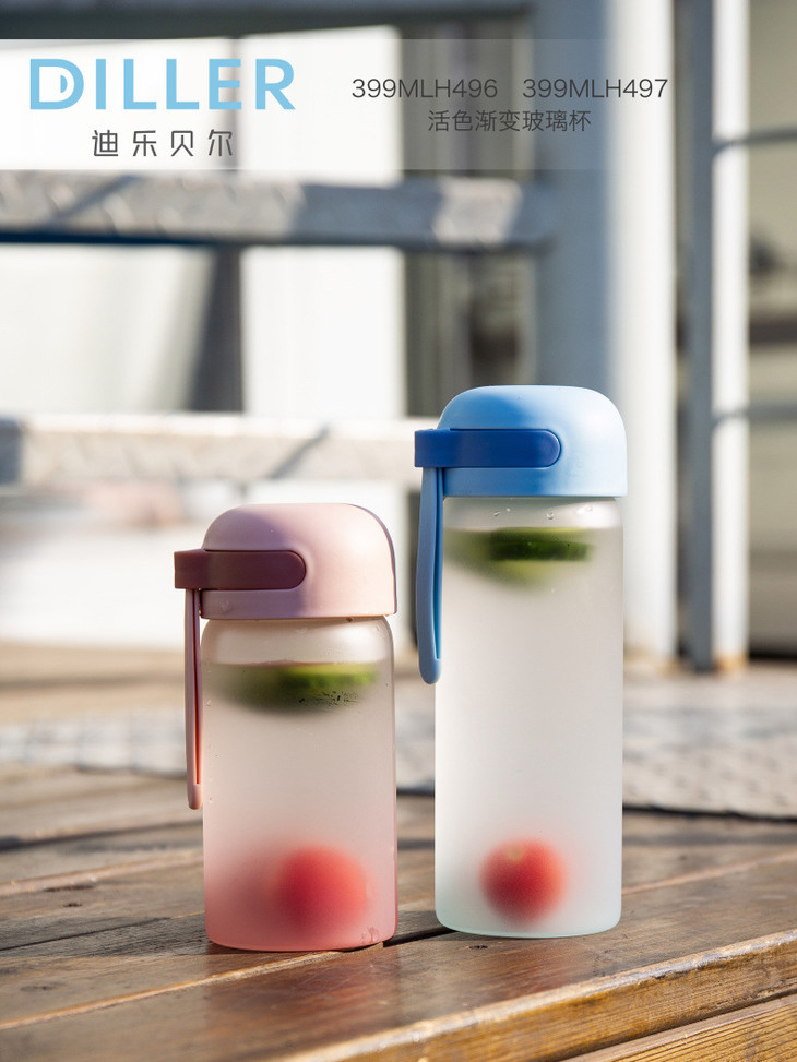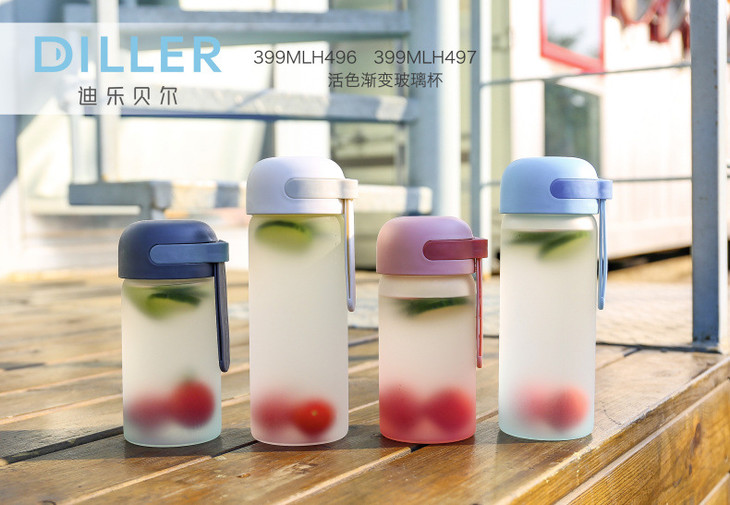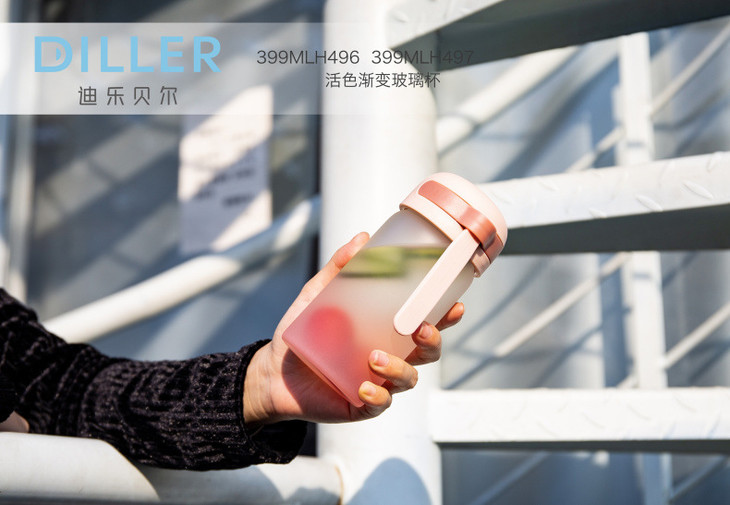 【迪乐贝尔】*时尚高硼玻璃杯创意耐高温手提防烫渐变色迪乐贝尔男女生水杯