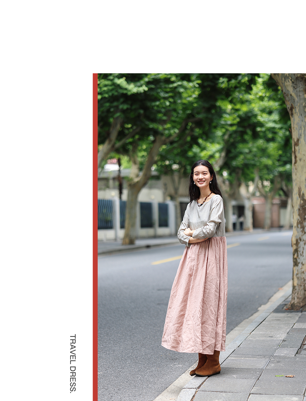 以天然亚麻为载体,融合热烈色彩与自在剪裁为身在城市、心怀远方的女性提供兼具美学与舒适的旅行着装