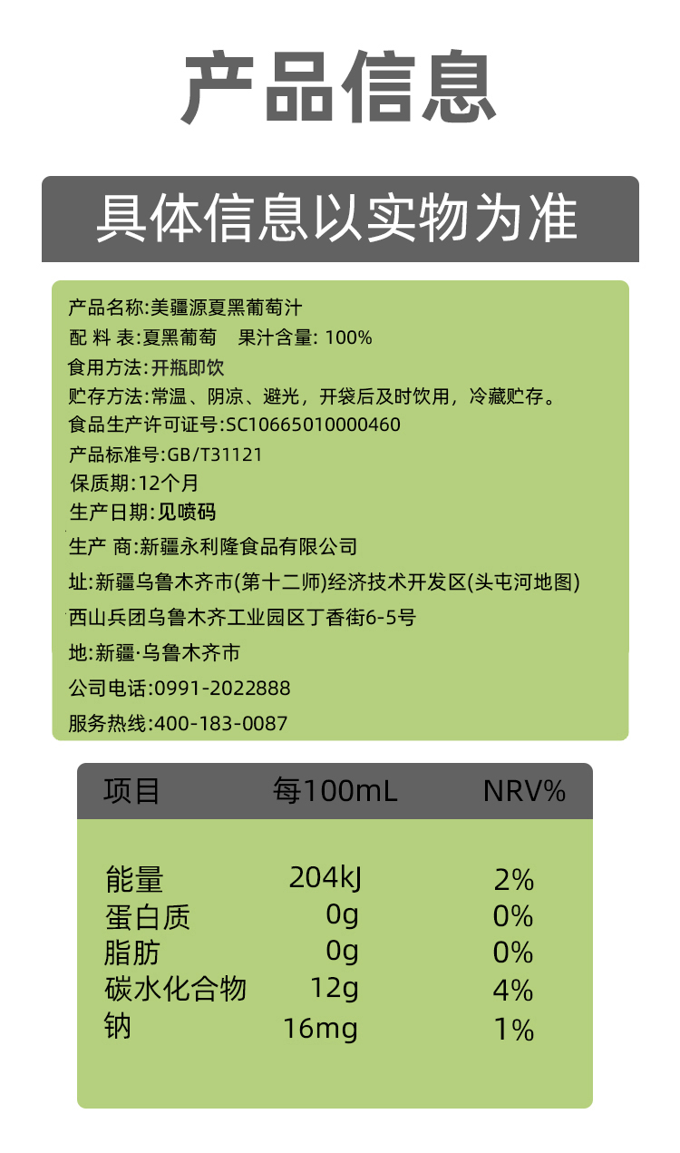 【全国包邮】新疆葡萄汁(318ml*5瓶)