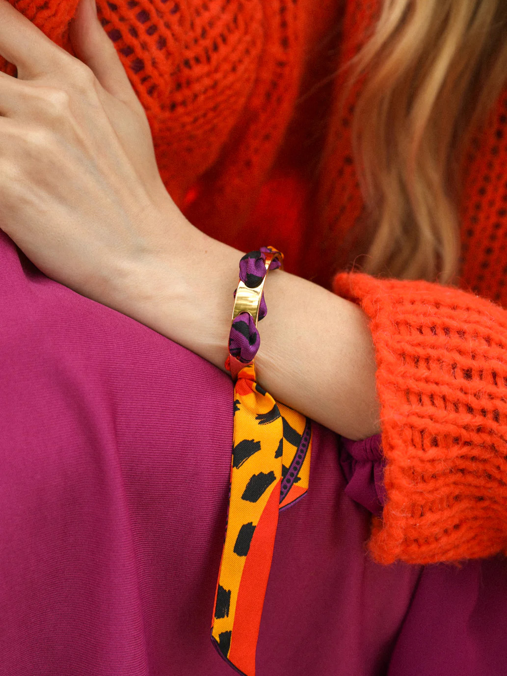 订购14周到|AN-NEE-SEPTEMBRE-橘红色 夏帕诺瓦 2cm 丝巾手镯[法国设计师]