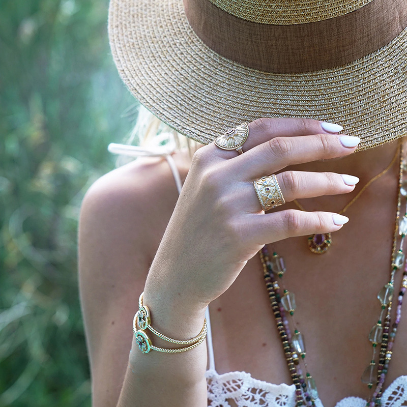 北京仓|Diaperis Paris-CAMELIA-山茶花 金色 碧玺 锆石 戒指[法国设计师]