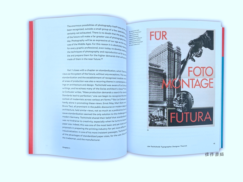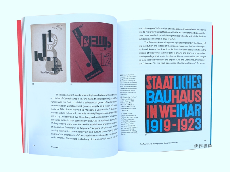 这本精美的书提供了对扬·奇肖尔德的工作和他推动形成的艺术运动的根本理论的新理解,通过分析他的收藏:插图、广告、杂志,和著名人物的书籍,如库尔特·施威特斯(Kurt Schwitters)、埃尔·利西茨基(El Lissitzky)、亚历山大·罗德钦科 (Aleksandr Rodchenko) 和拉洛兹·莫霍利-纳吉 (László Moholy-Nagy),以及不太知名的艺术家和设计师,包括威利·鲍迈斯特(Willi Baumeister)、马克斯·布查斯(Max Burchartz)、沃尔特·德克塞尔 (Walter Dexel)、和皮特·兹瓦特 (Piet Zwart)。