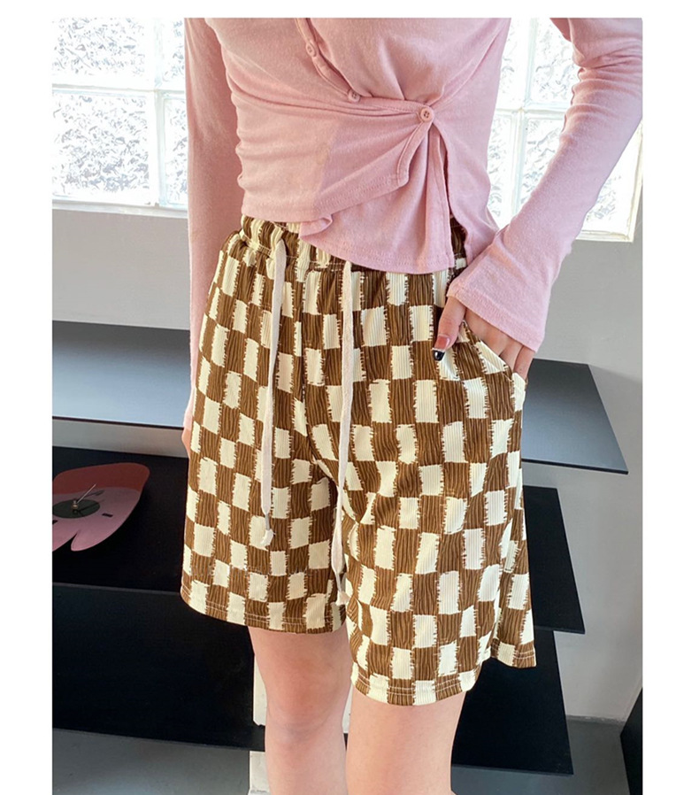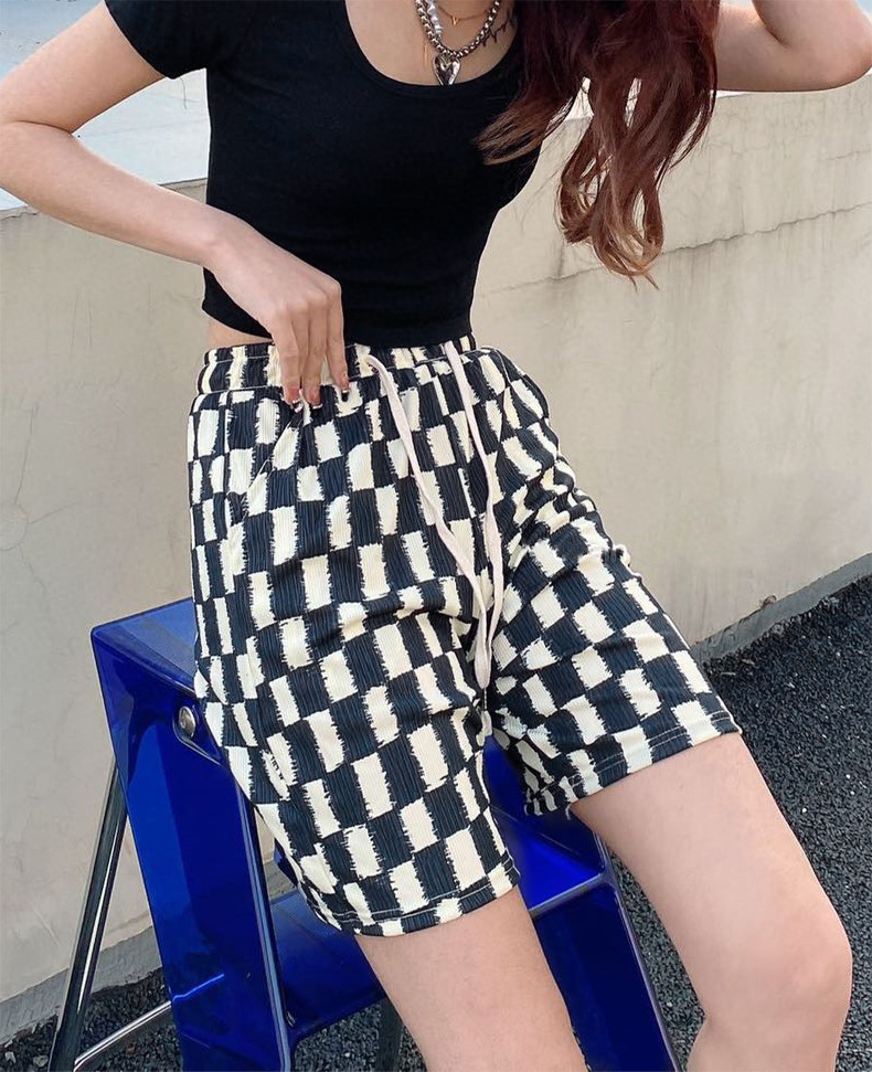 【59买一送一,清凉小冰裤】上身清凉冰感,棋盘格子冰丝五分裤 显瘦遮肉 腿粗屁股大必备 透气不闷热