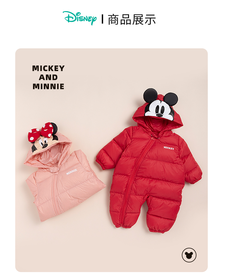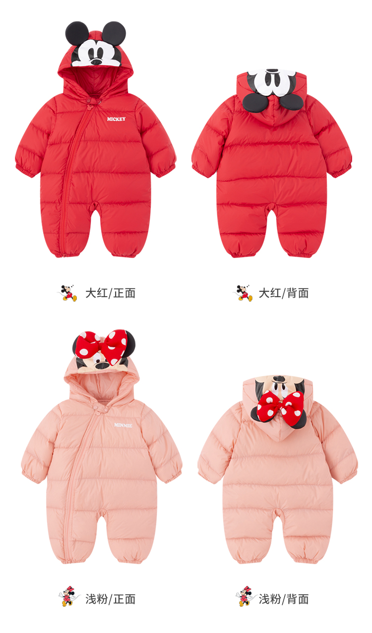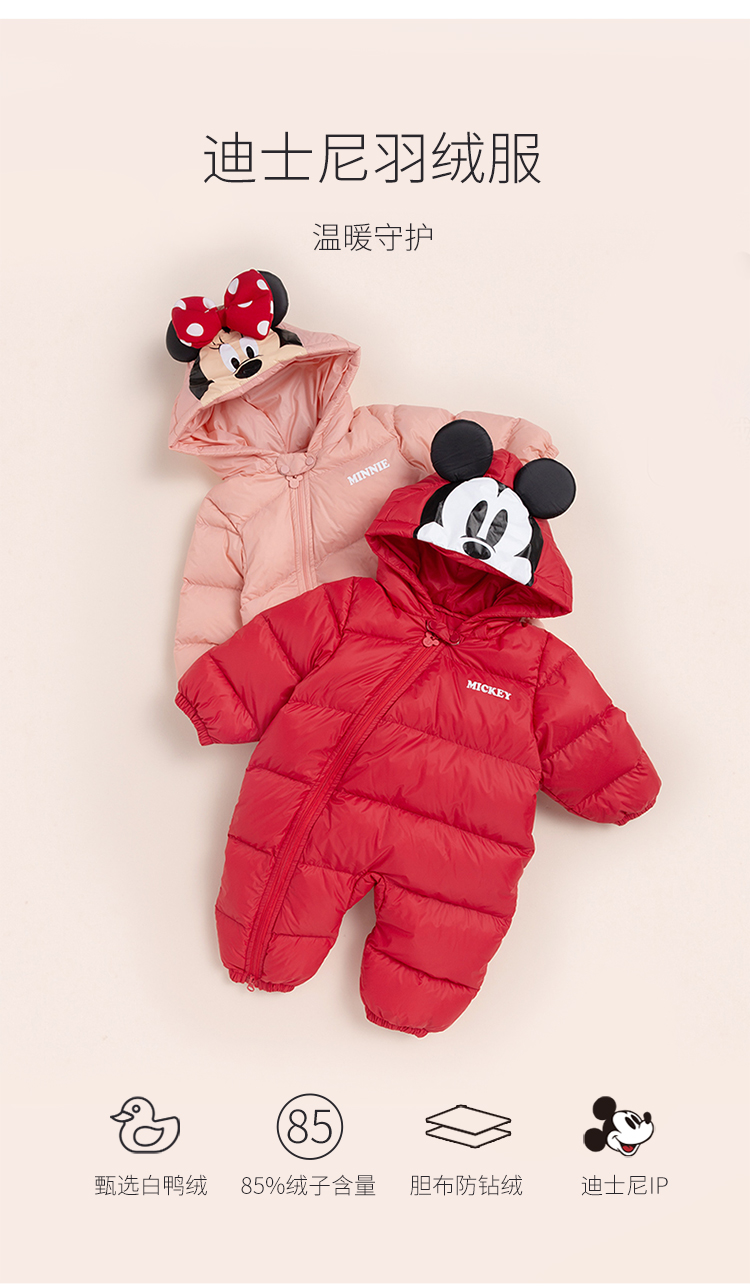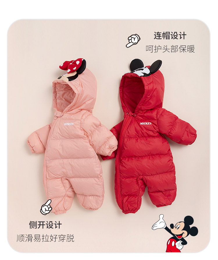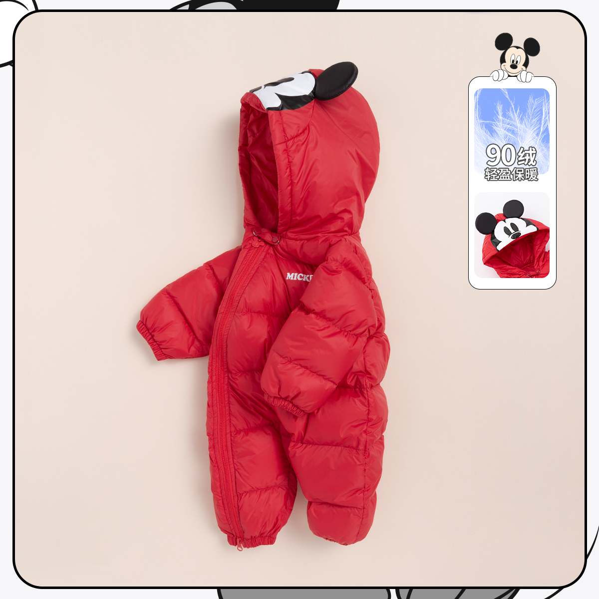 迪士尼男女宝宝羽绒服新生儿爬服冬装新款轻婴儿白鸭绒连体衣