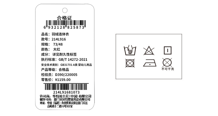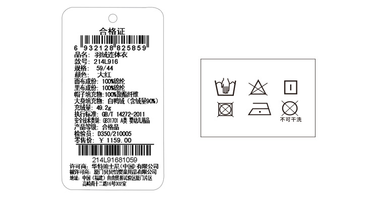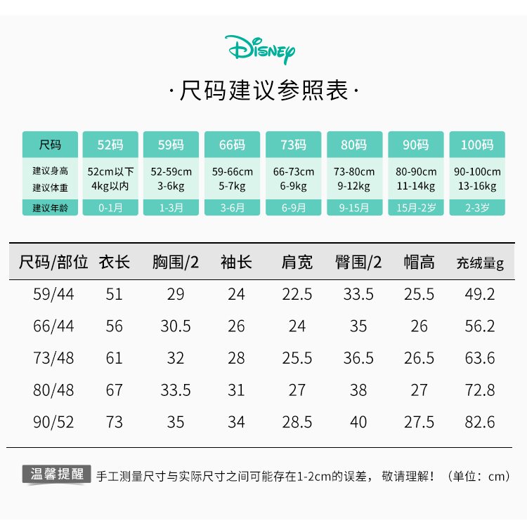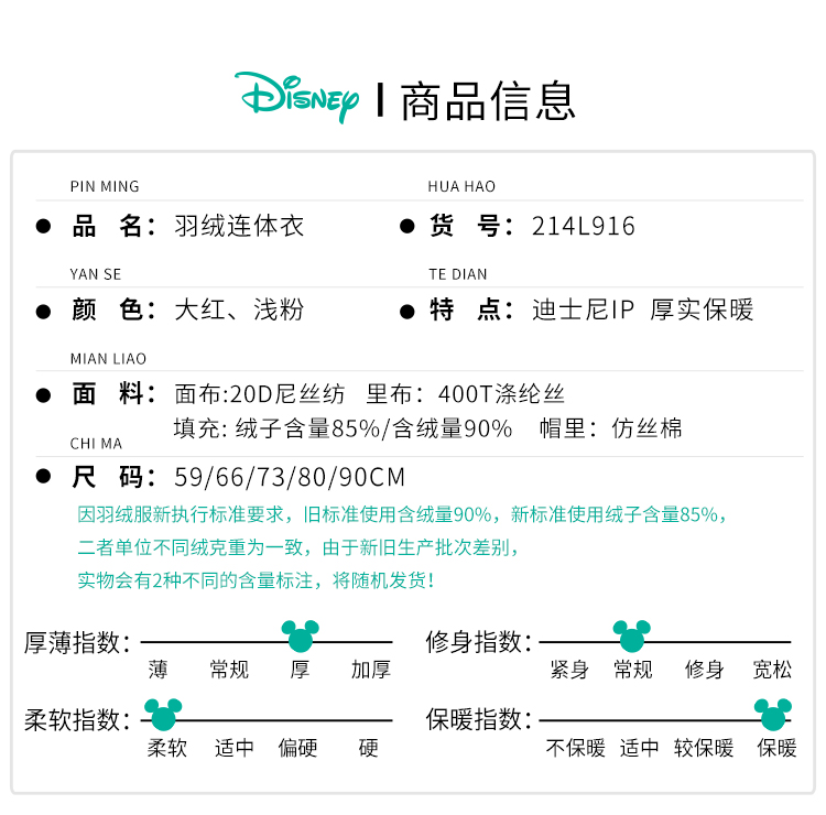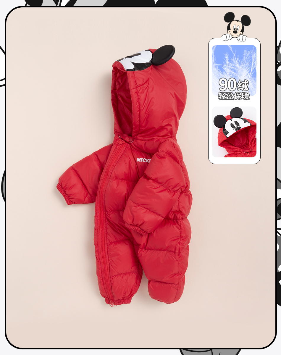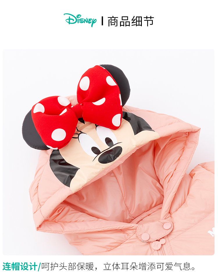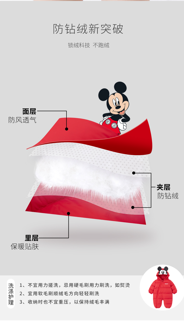 迪士尼男女宝宝羽绒服新生儿爬服冬装新款轻婴儿白鸭绒连体衣
