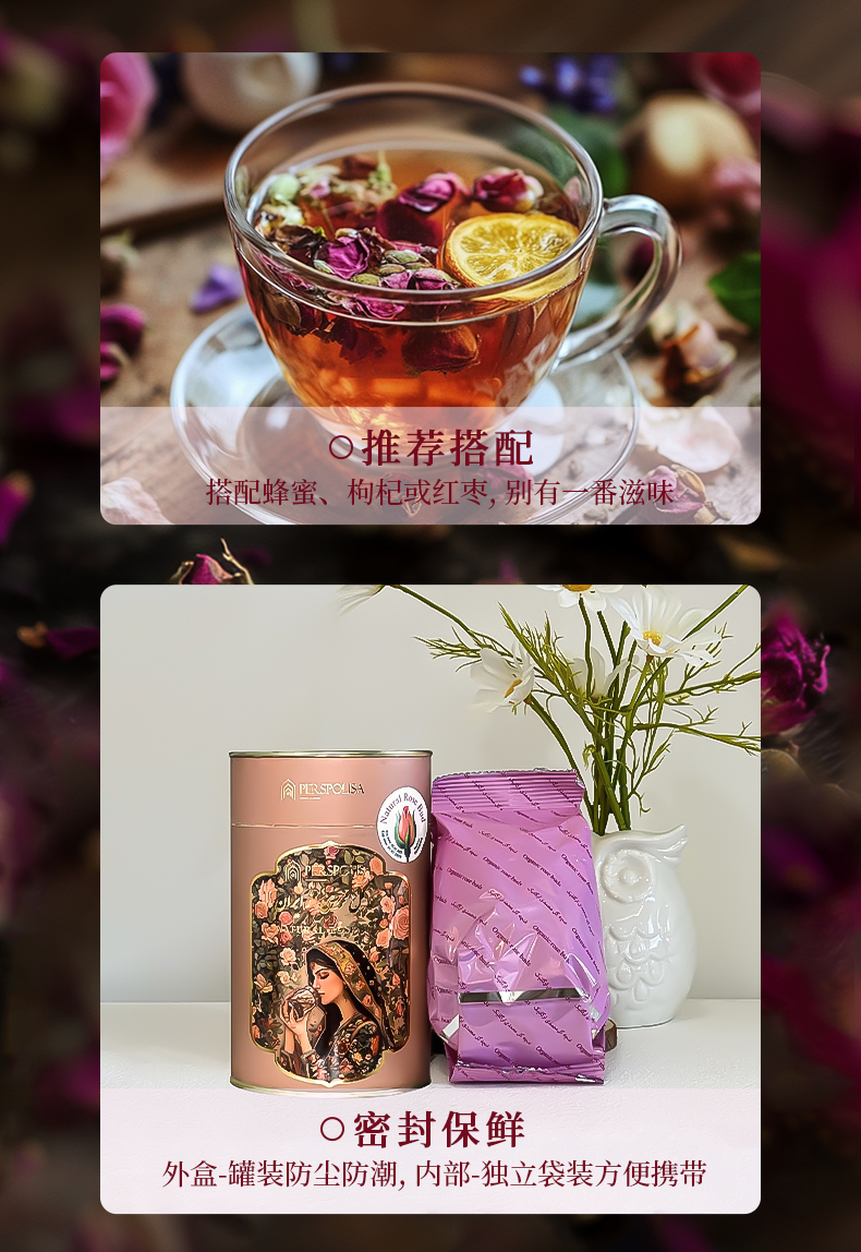 【品名】巴莉哲 伊朗进口大马士革玫瑰花茶 低温风干 香气馥郁 50g/罐 【规格】50g/罐 【产地】伊朗 【保质期】2年 【发货包装】独立包装罐 【发货地】上海 【发货快递】极兔 【补运费区域】新疆、西藏、内蒙古、宁夏、青海、海南+15元 【发货时效】48-72小时,周末节假日顺延 |