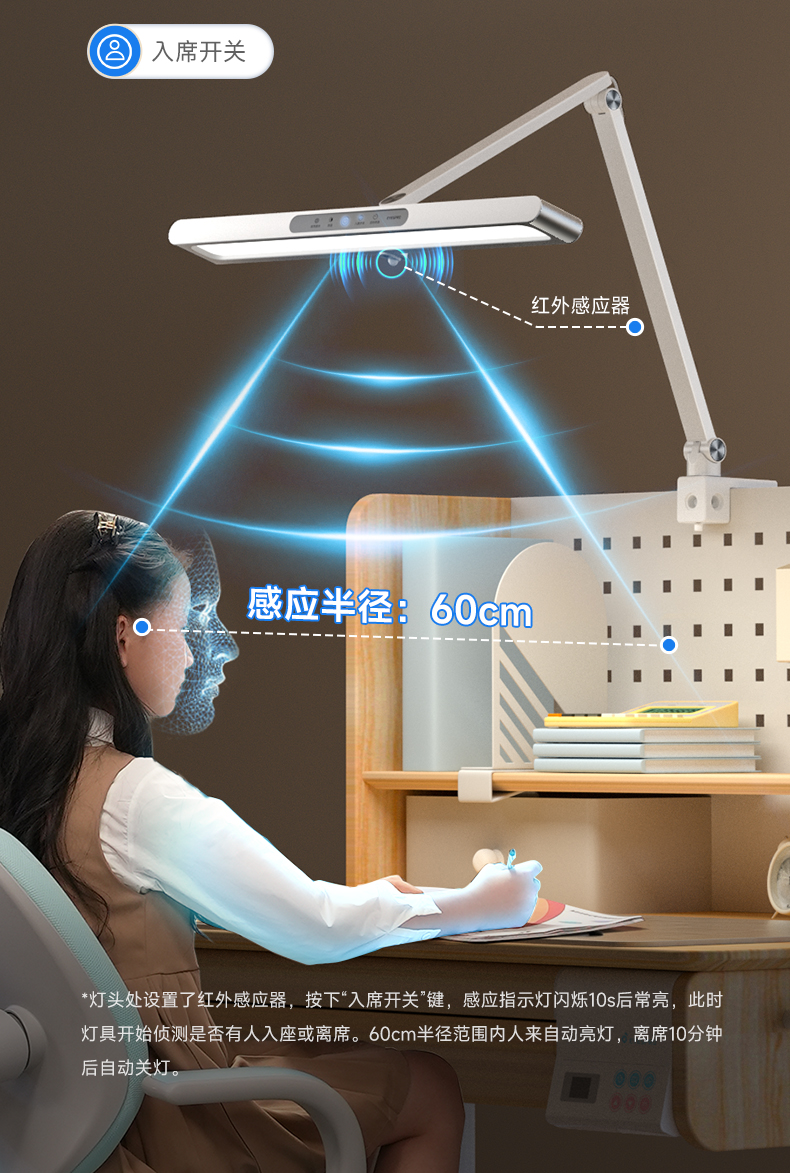 【怡禾】孩视宝 智能夹灯台灯护眼自然光 智能入席感应TH30(5CM) 商品图4