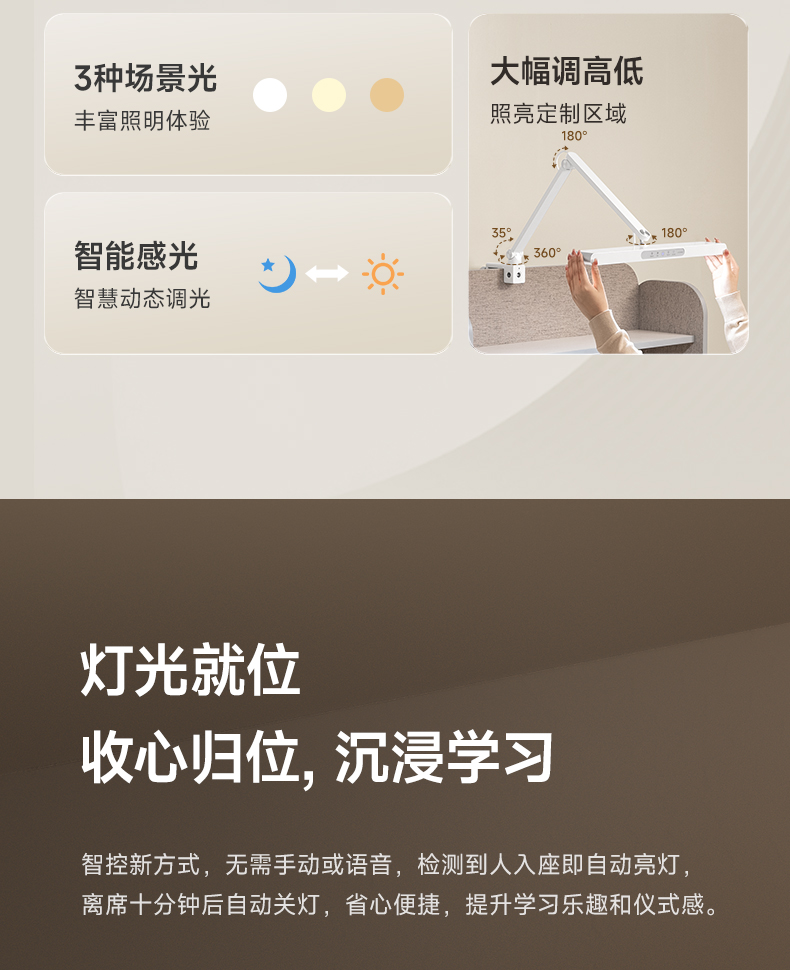 【怡禾】孩视宝 智能夹灯台灯护眼自然光 智能入席感应TH30(5CM) 商品图5