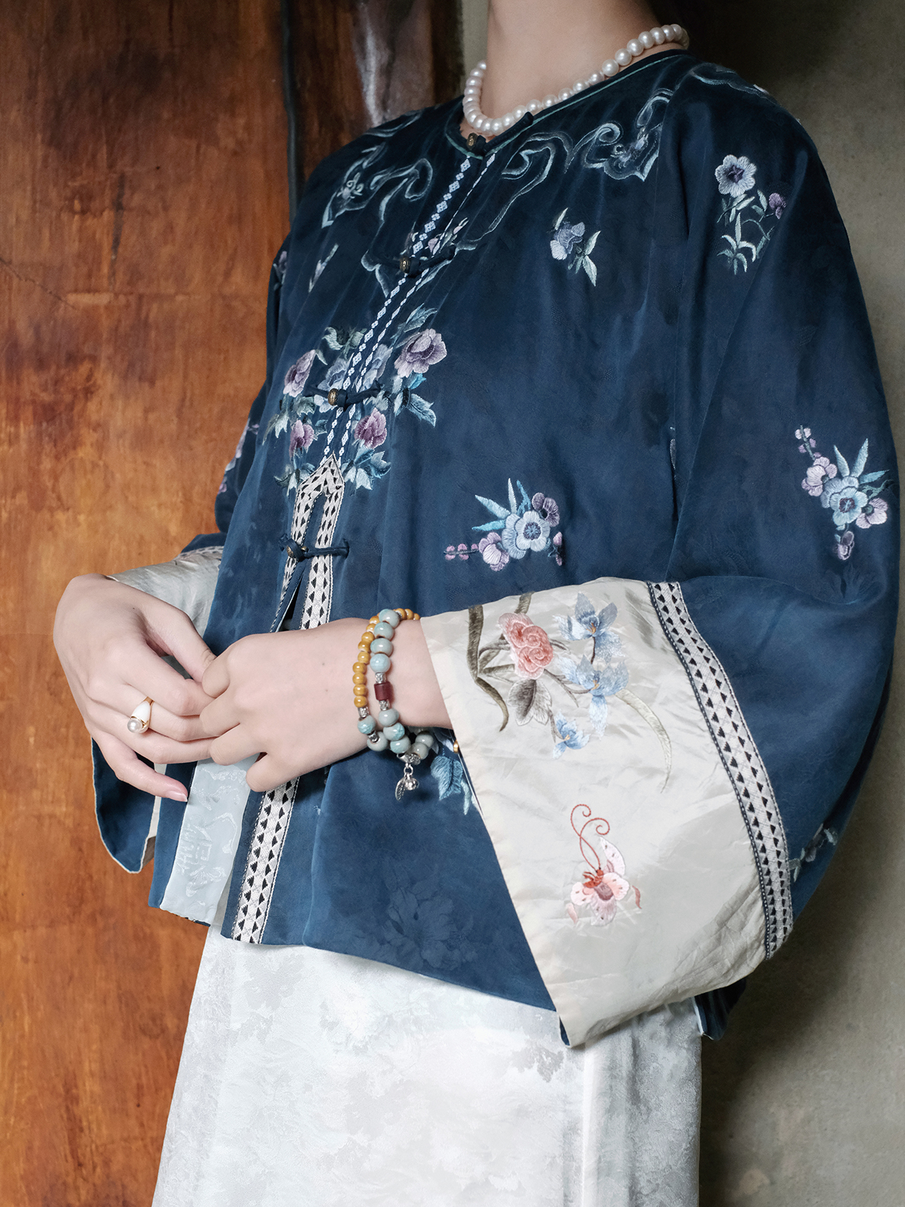 盛唐牡丹| 珍珠白真丝竹子纹偏襟上衣