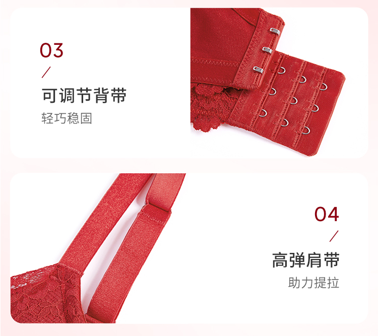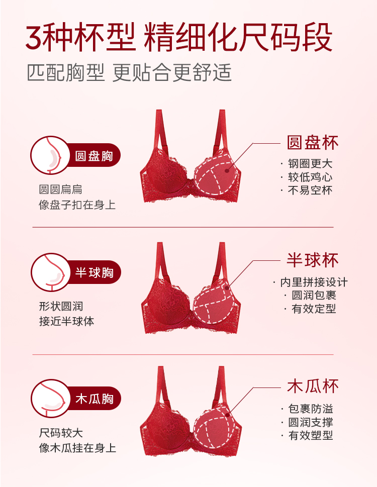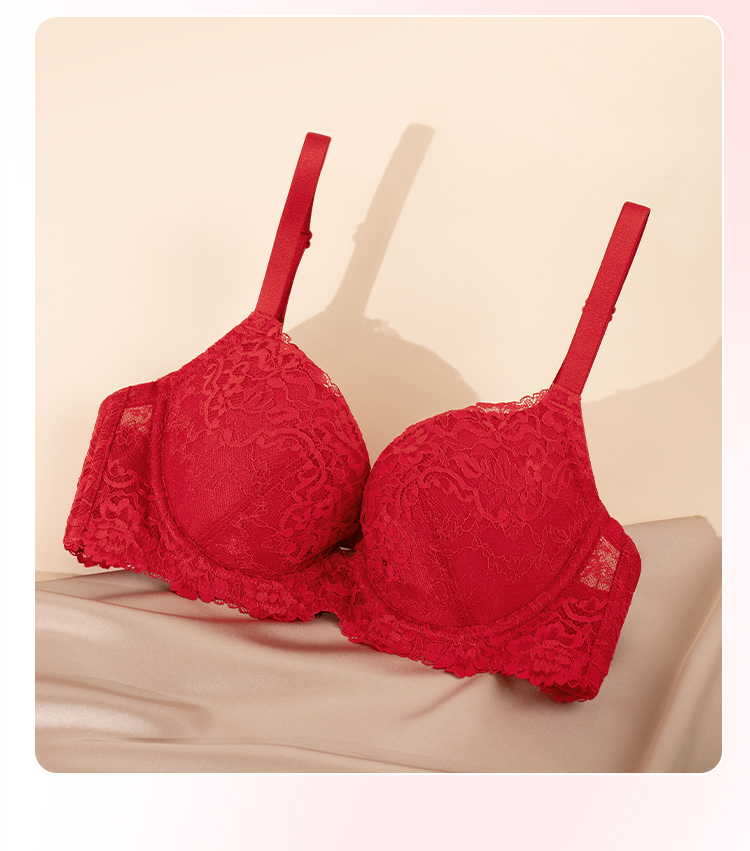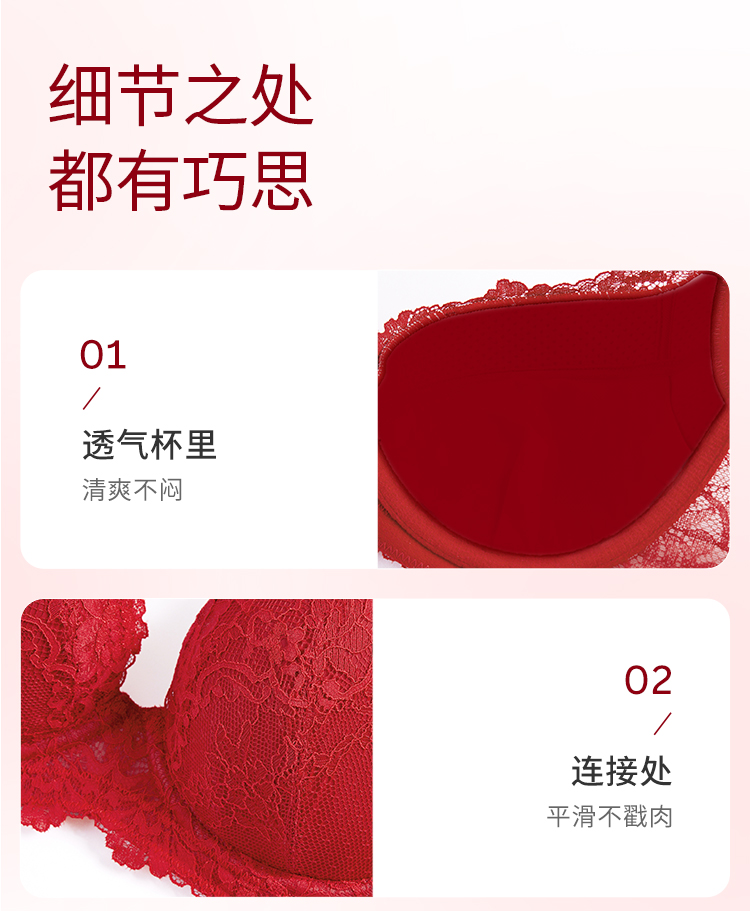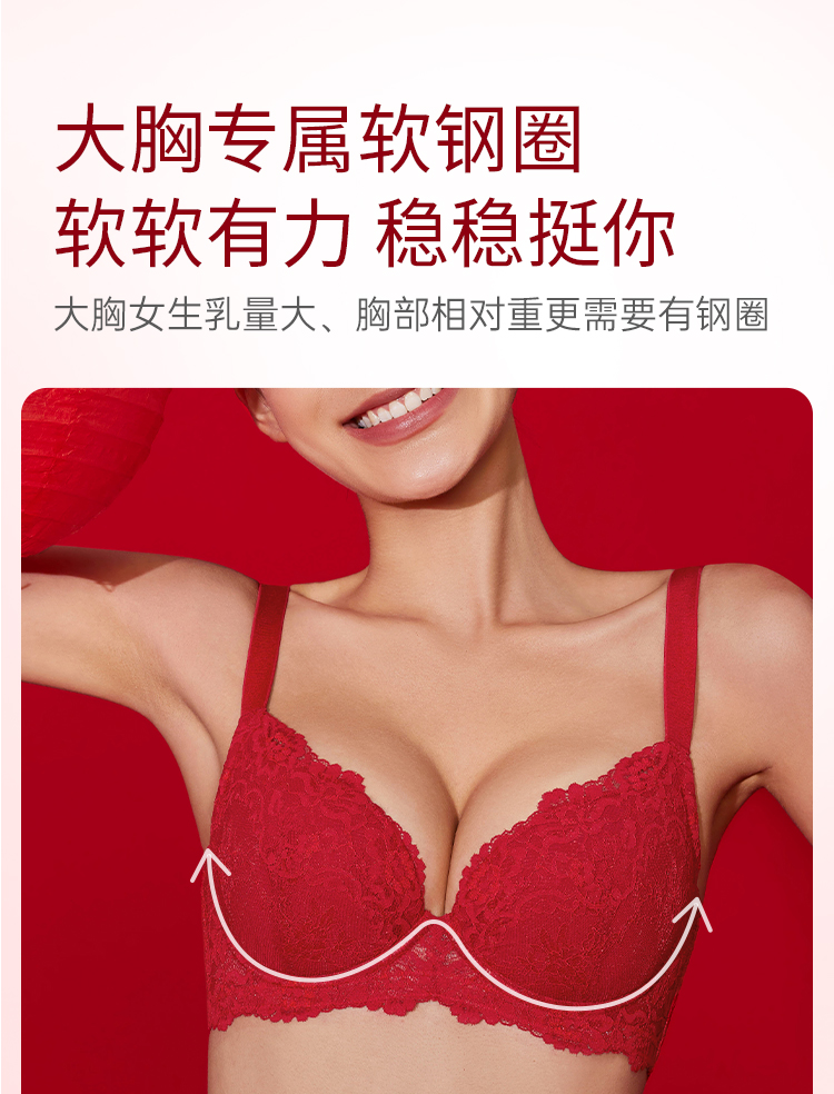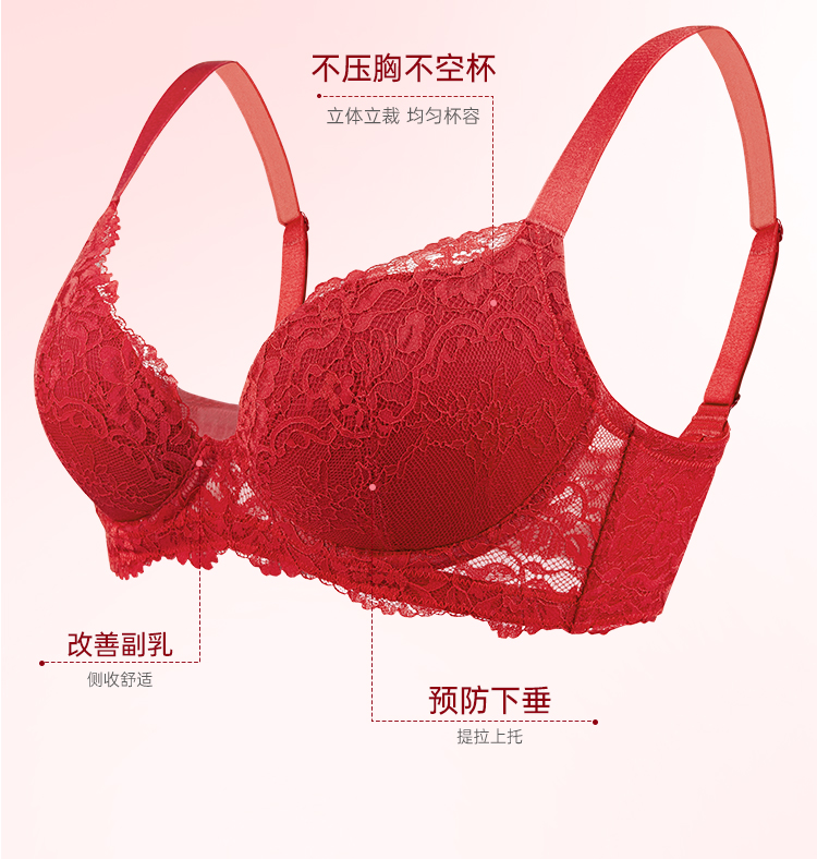 奶糖派大胸文胸告白分胸型4.0经典款红品防下垂蕾丝性感上托内衣