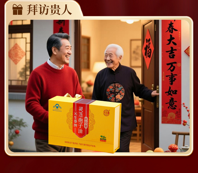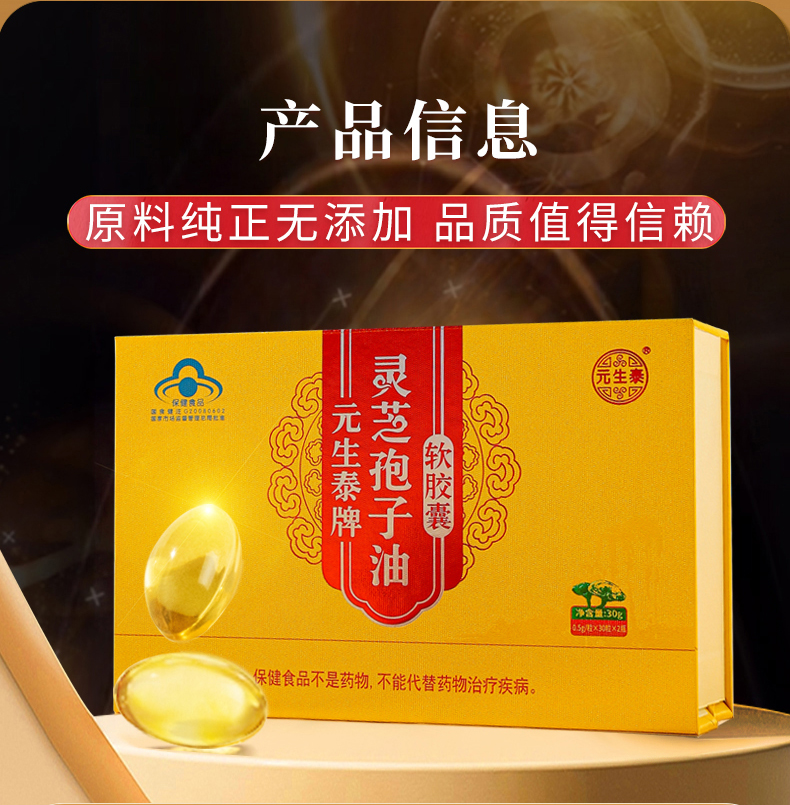 【畅销17年】元生泰牌 灵芝孢子油软胶囊 0.5g*30粒/瓶*2瓶 保肝护肝 灵芝精华浓缩中老年人营养滋补保健品