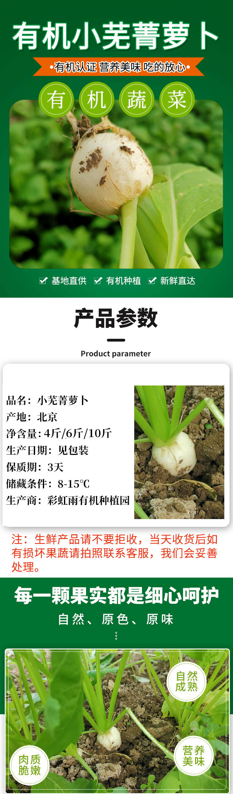【基地直发】 有机小芜菁萝卜4斤/6斤/10斤装欧盟认证包邮