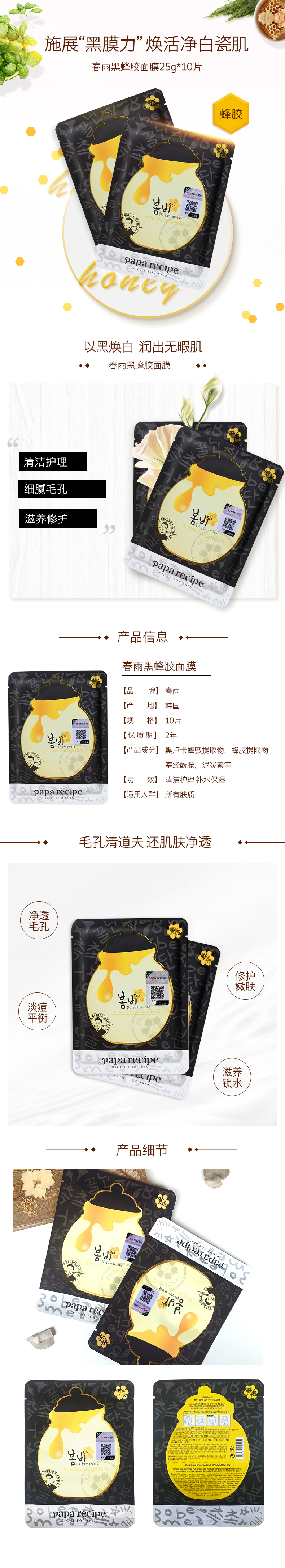 春雨黑蜂胶面膜(25g*10片)【30156593】