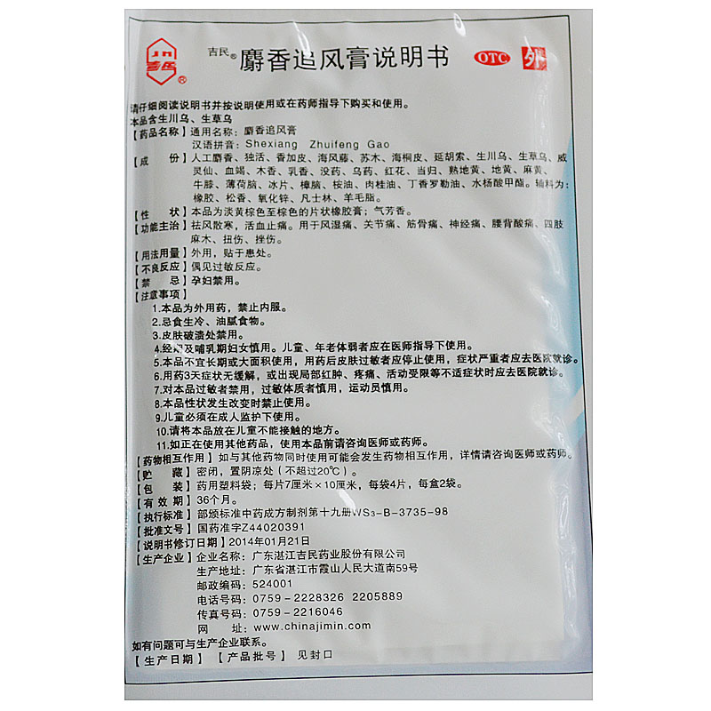 吉民麝香追风膏 8贴 活血止痛风湿关节筋骨神经痛扭伤腰背酸痛