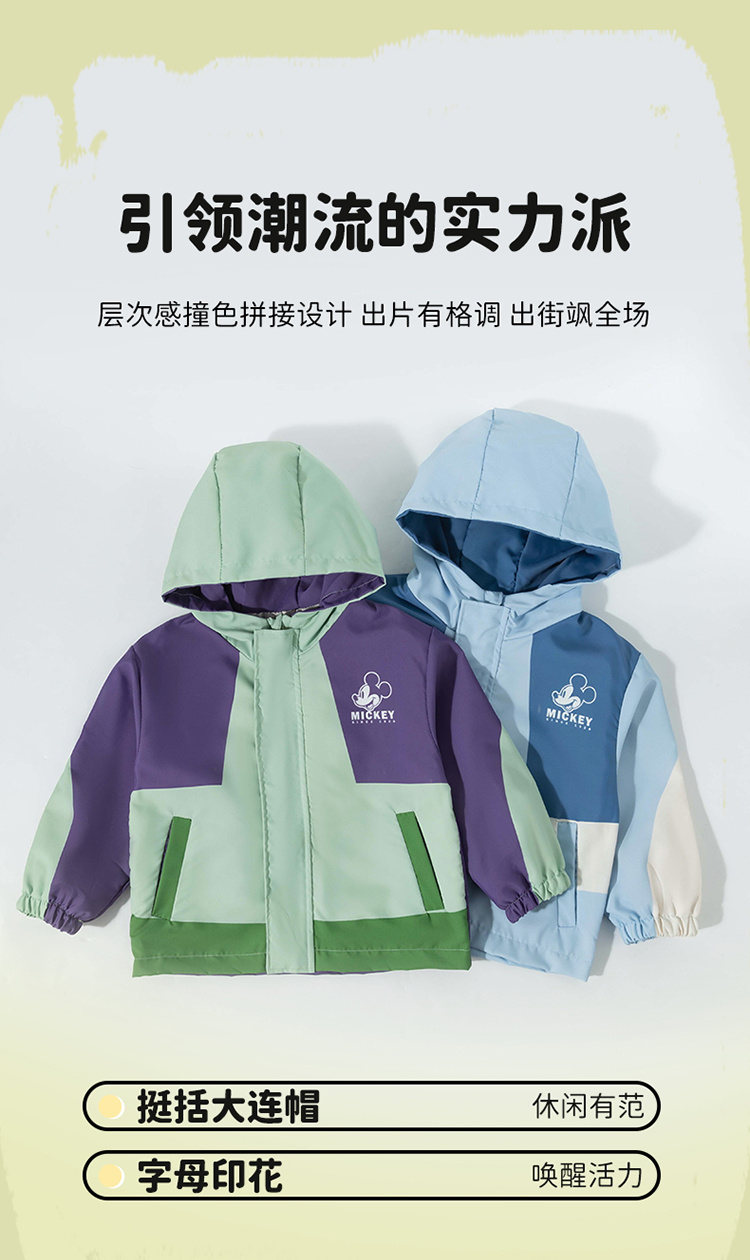 迪士尼【山系户外外套】25春秋季新款男童防风外套中大童运动休闲外套ZD1ES032