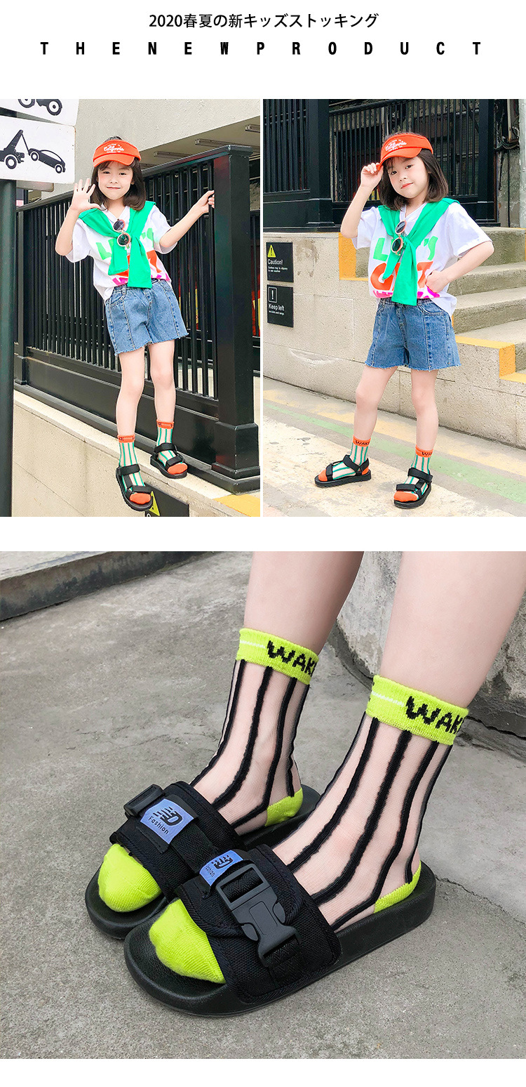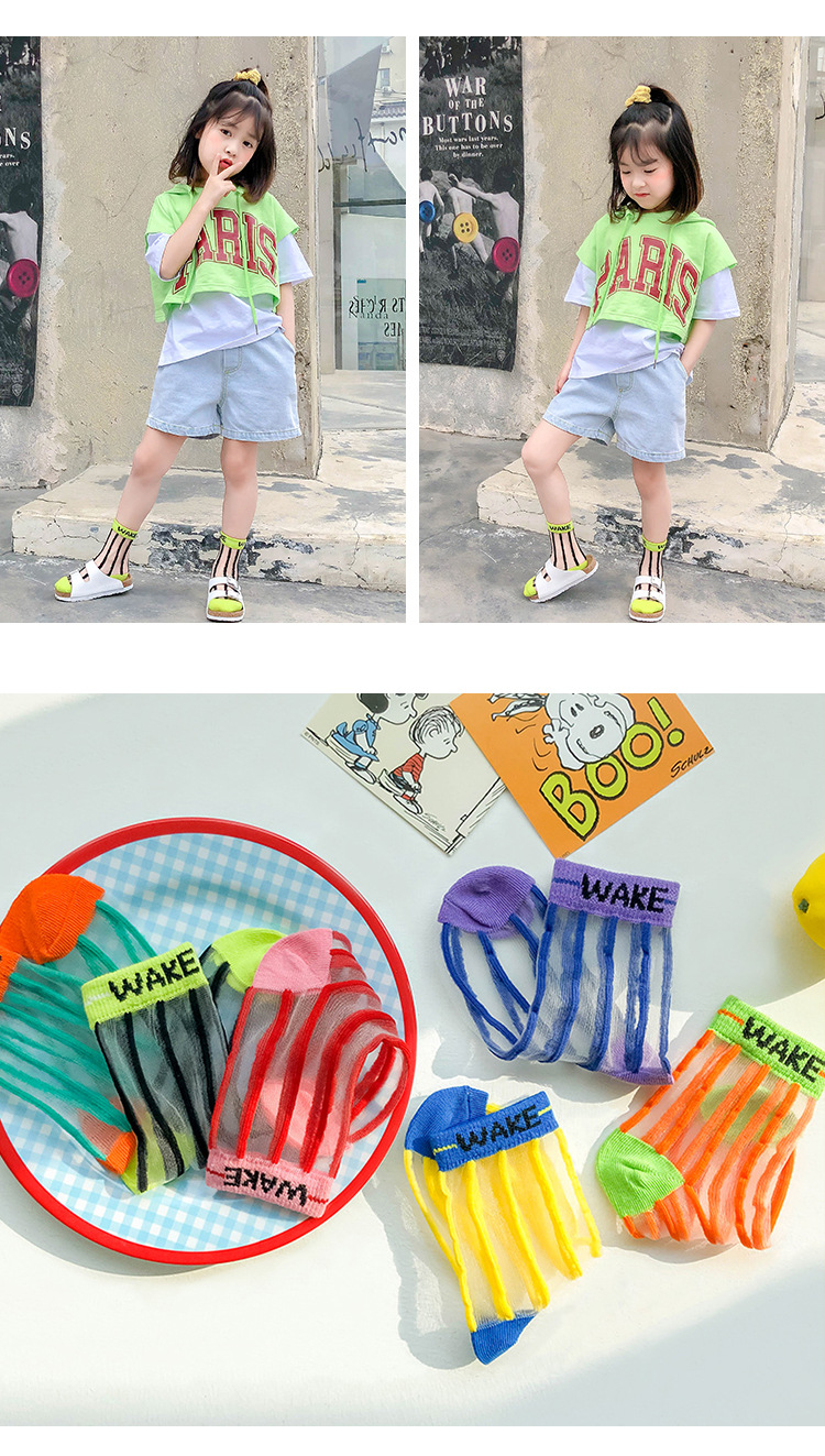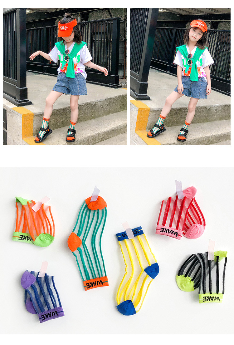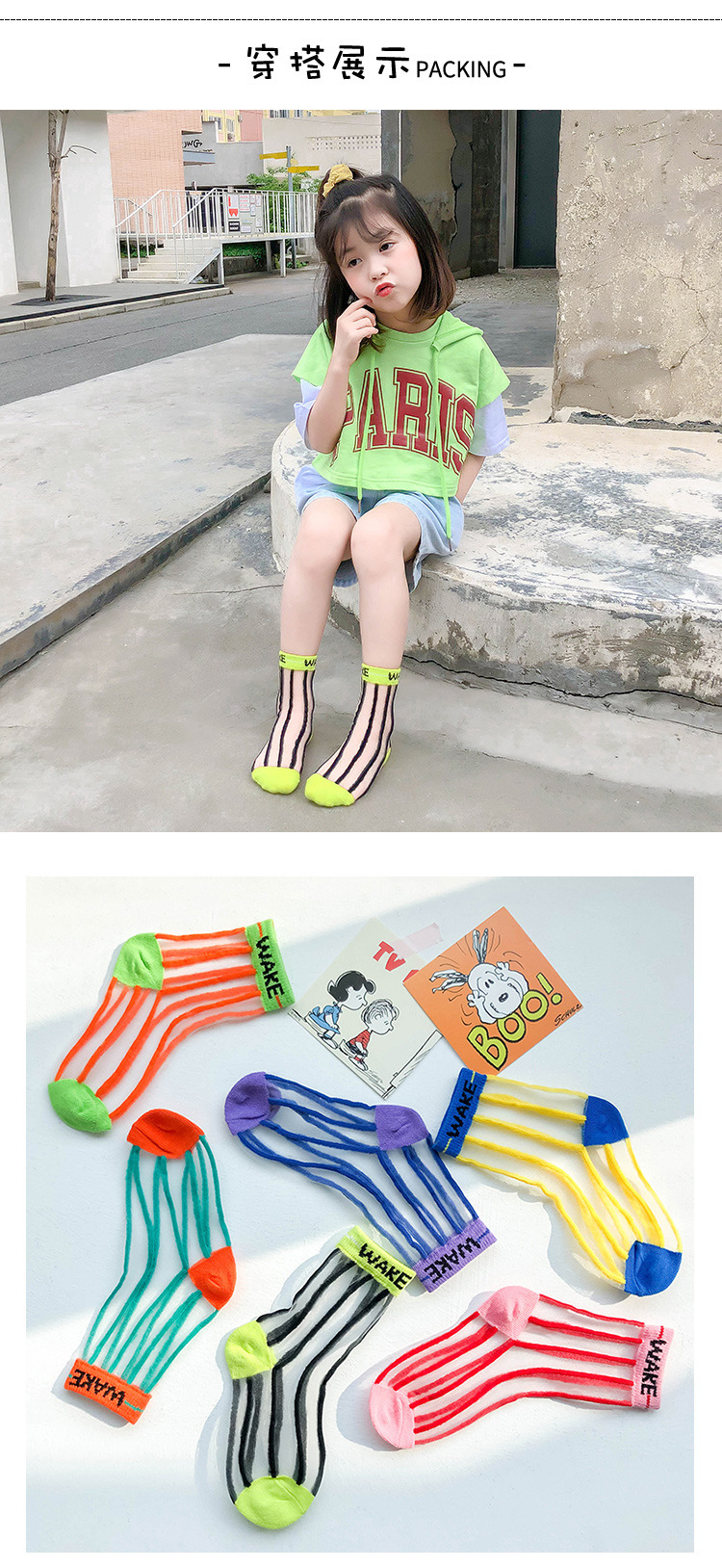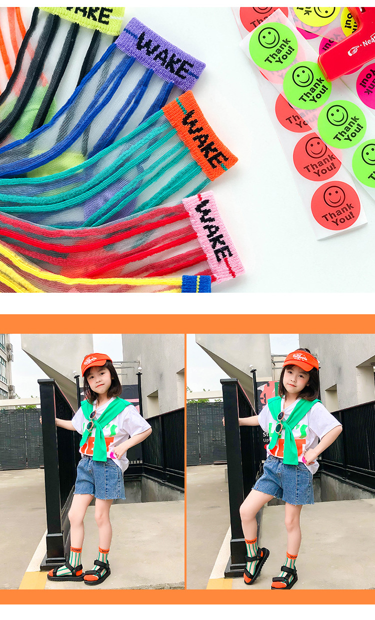 【6双装 重工潮袜 百搭透气】只一只夏季薄款字母条纹卡丝袜棉透气网眼儿童袜子