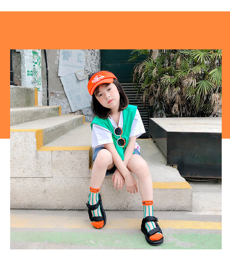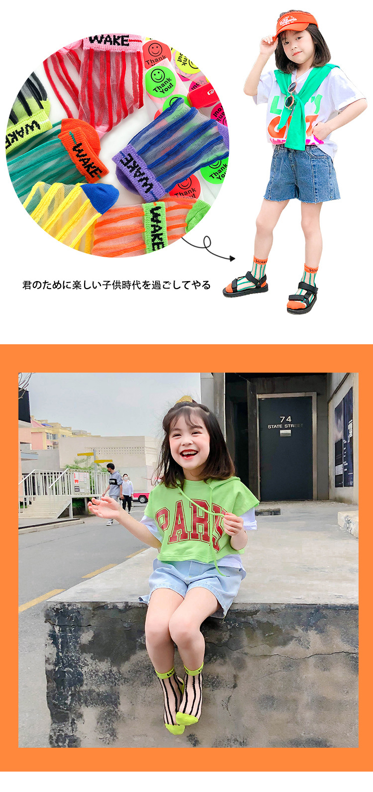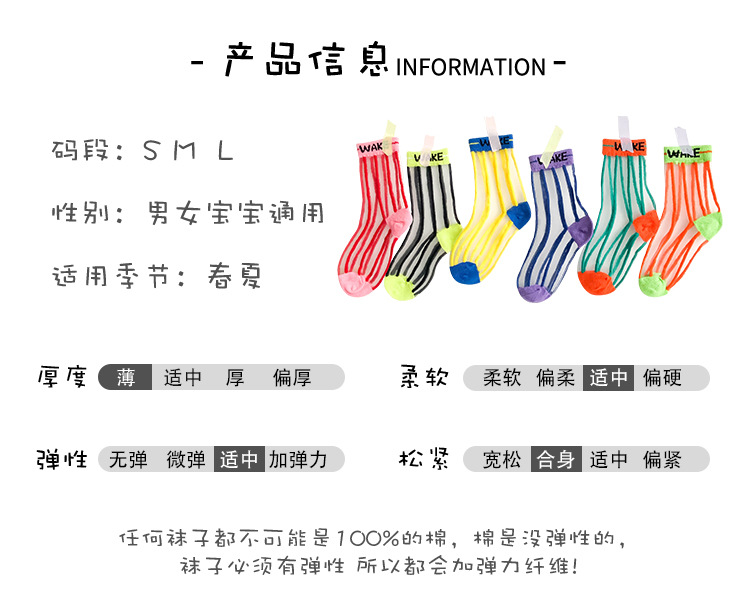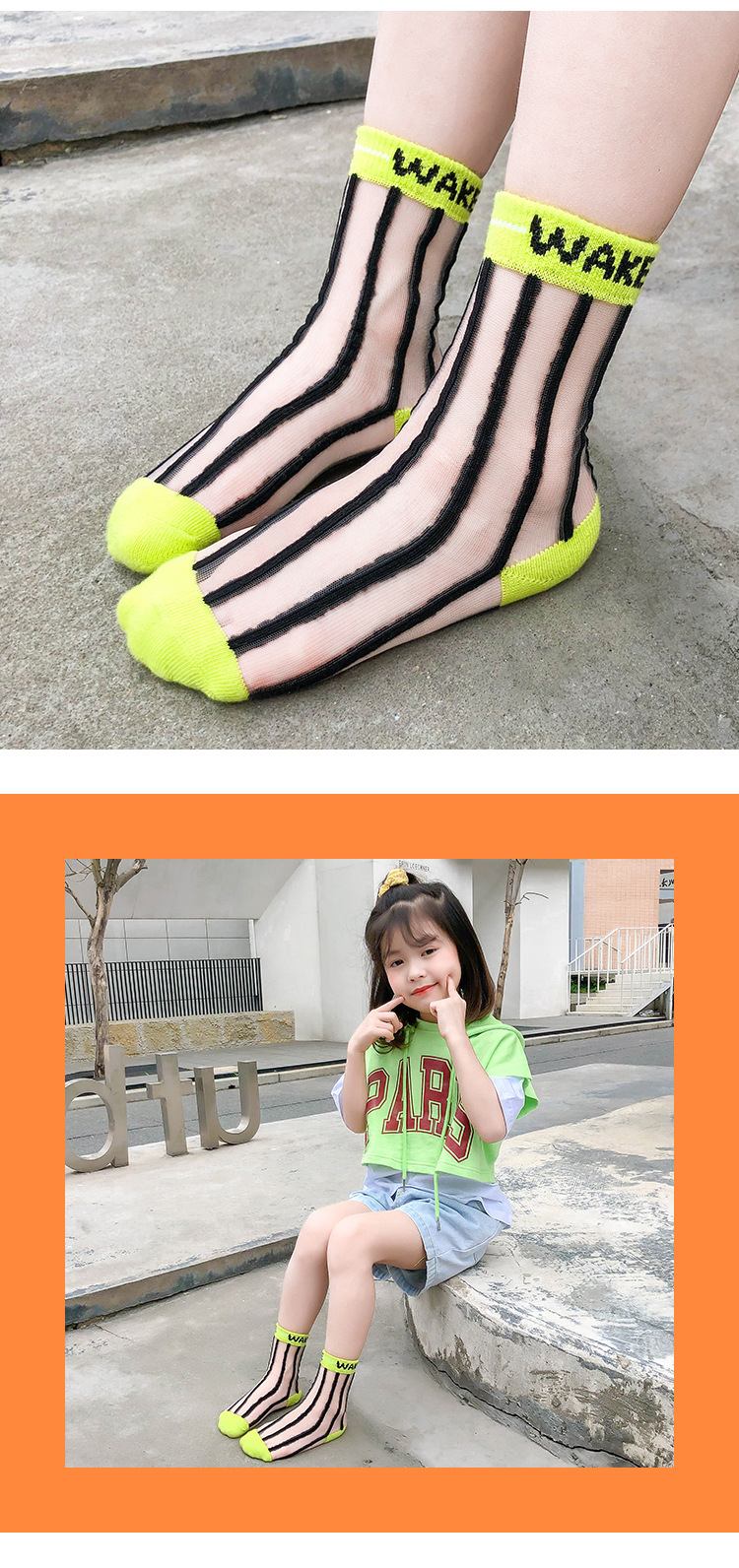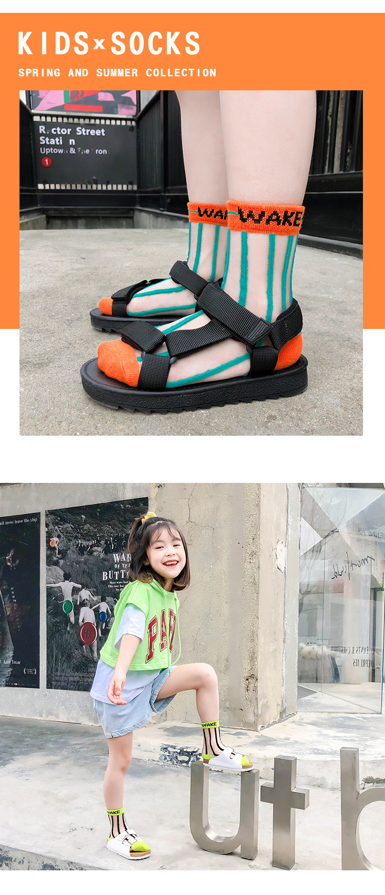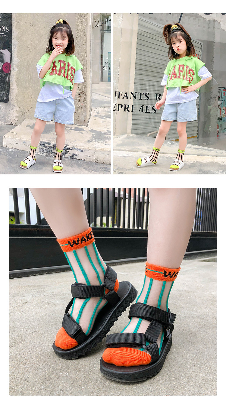 【6双装 重工潮袜 百搭透气】只一只夏季薄款字母条纹卡丝袜棉透气网眼儿童袜子