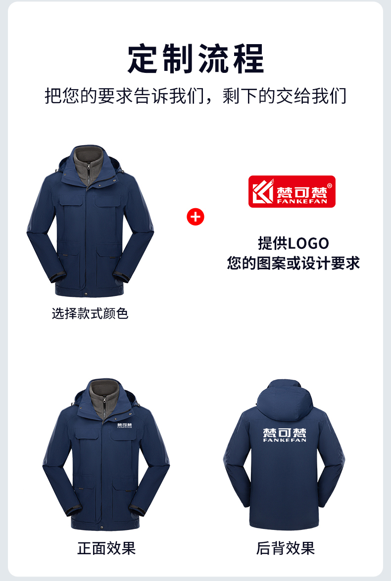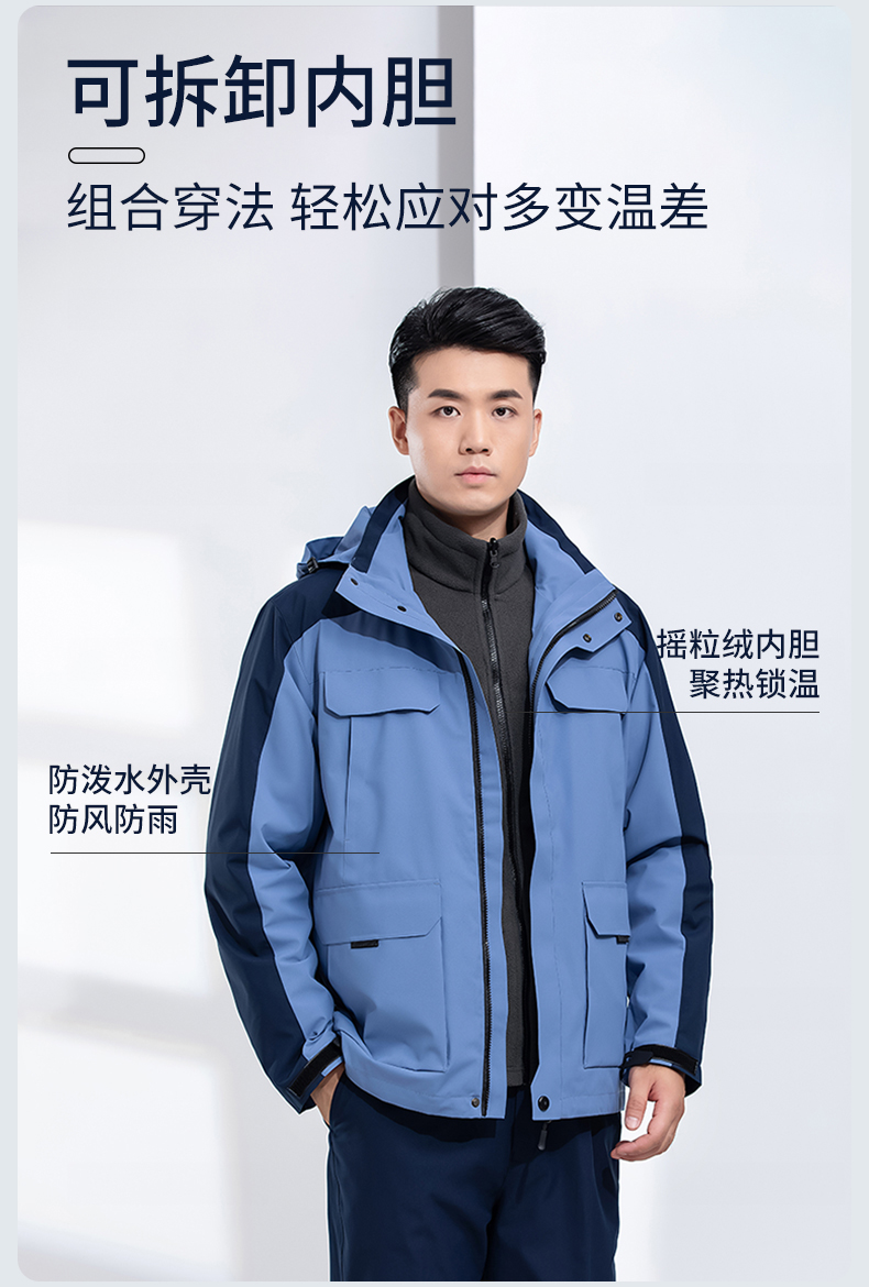 冲锋衣工作服男装棉衣冬季4S店汽修厂服棉服加厚可拆卸工装定制