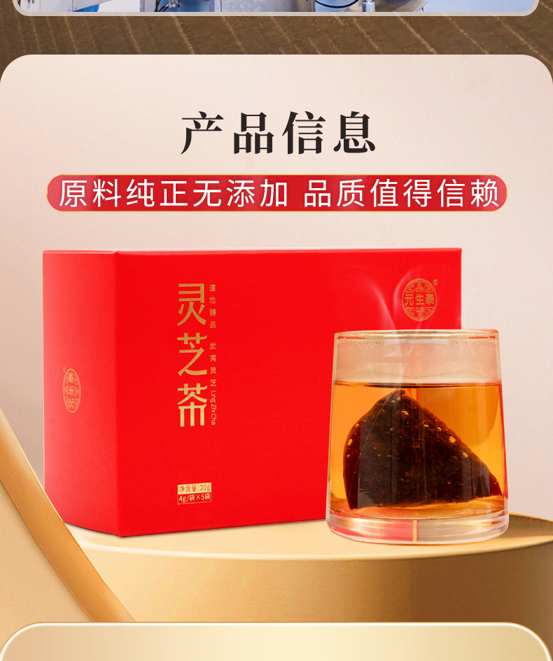 元生泰 紫灵芝茶 4g*5袋/盒 袋泡茶 滋补养生茶 武夷山紫灵芝茶切碎丁 营养品