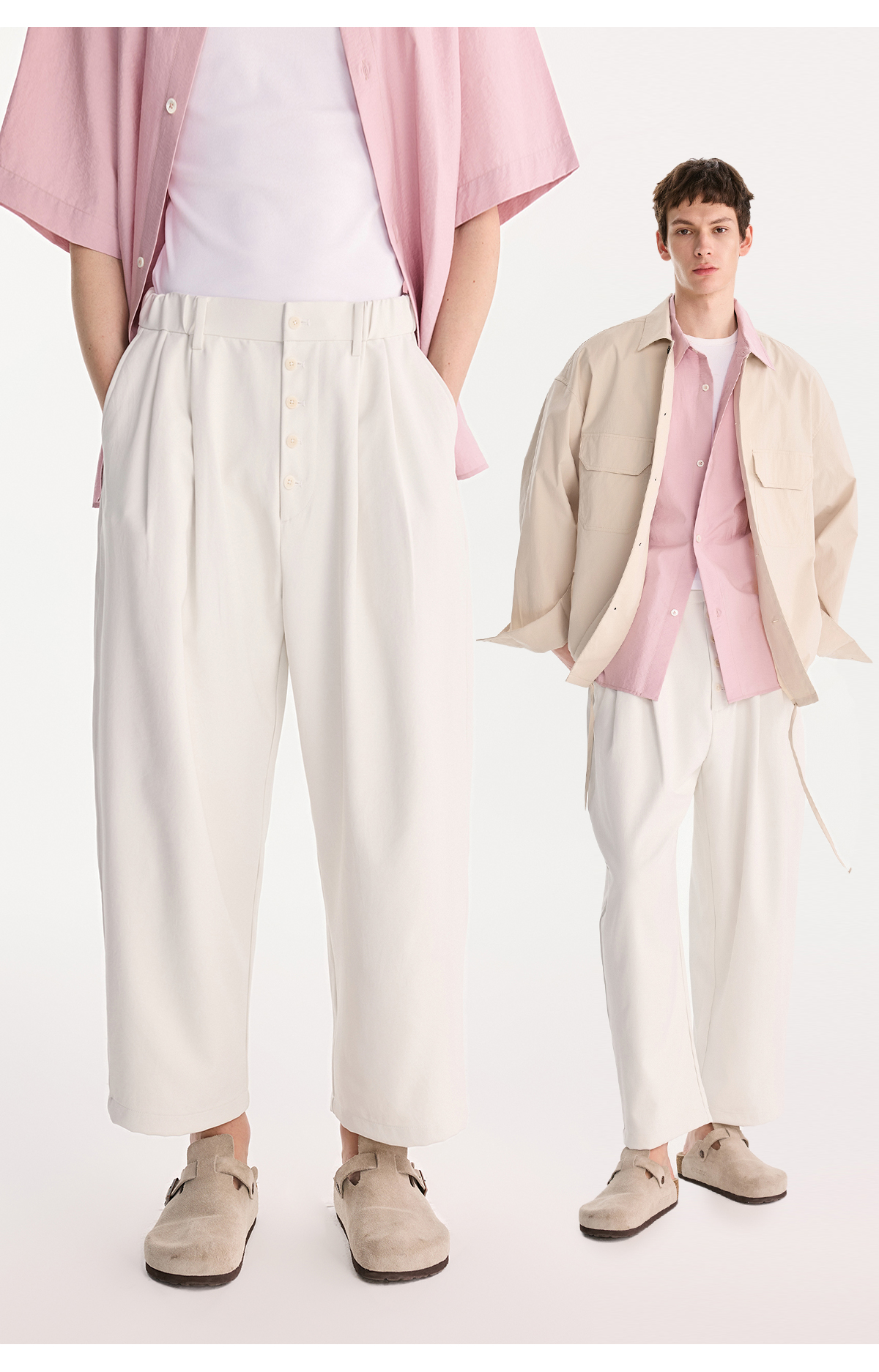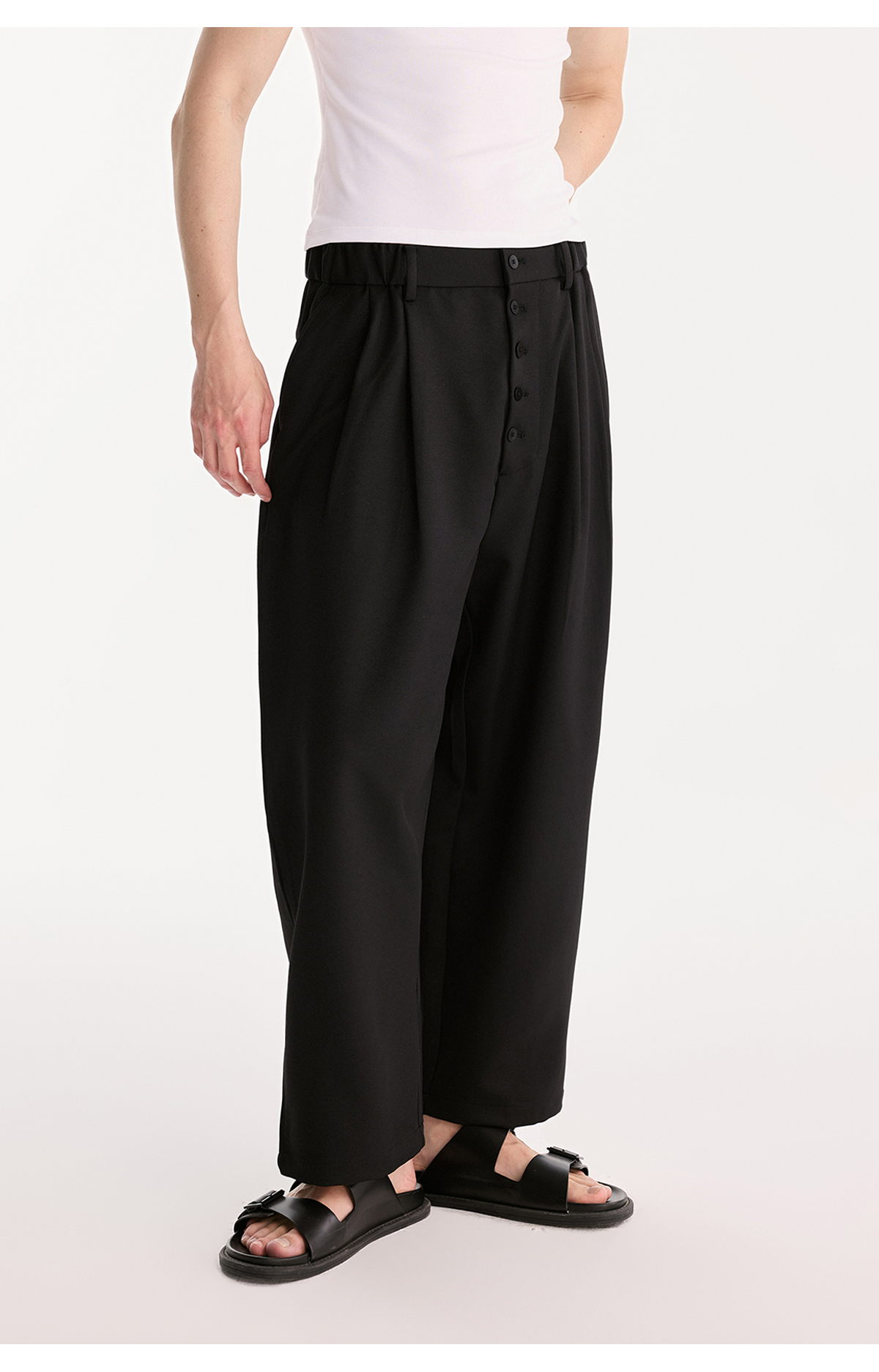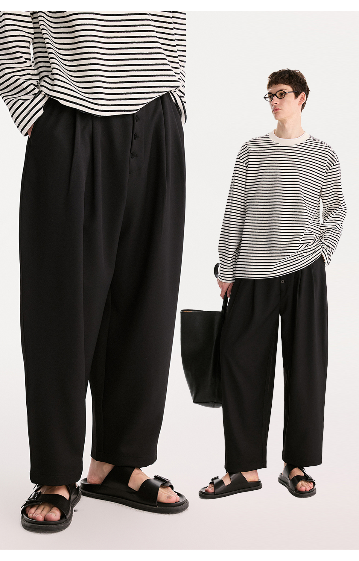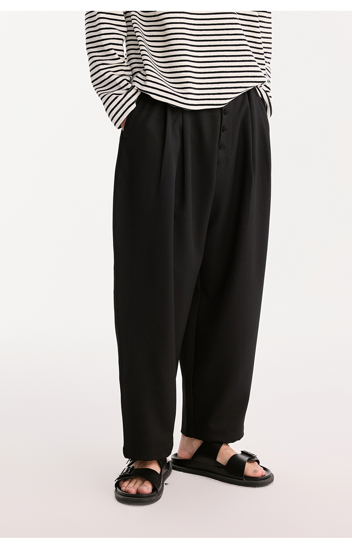 棉仓3621018006-【阁中雅士】落档门襟纽扣装饰九分日式休闲裤