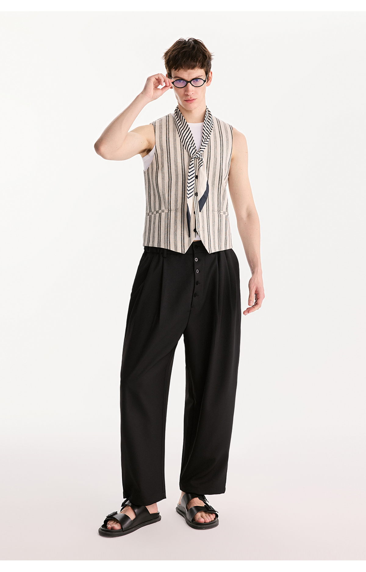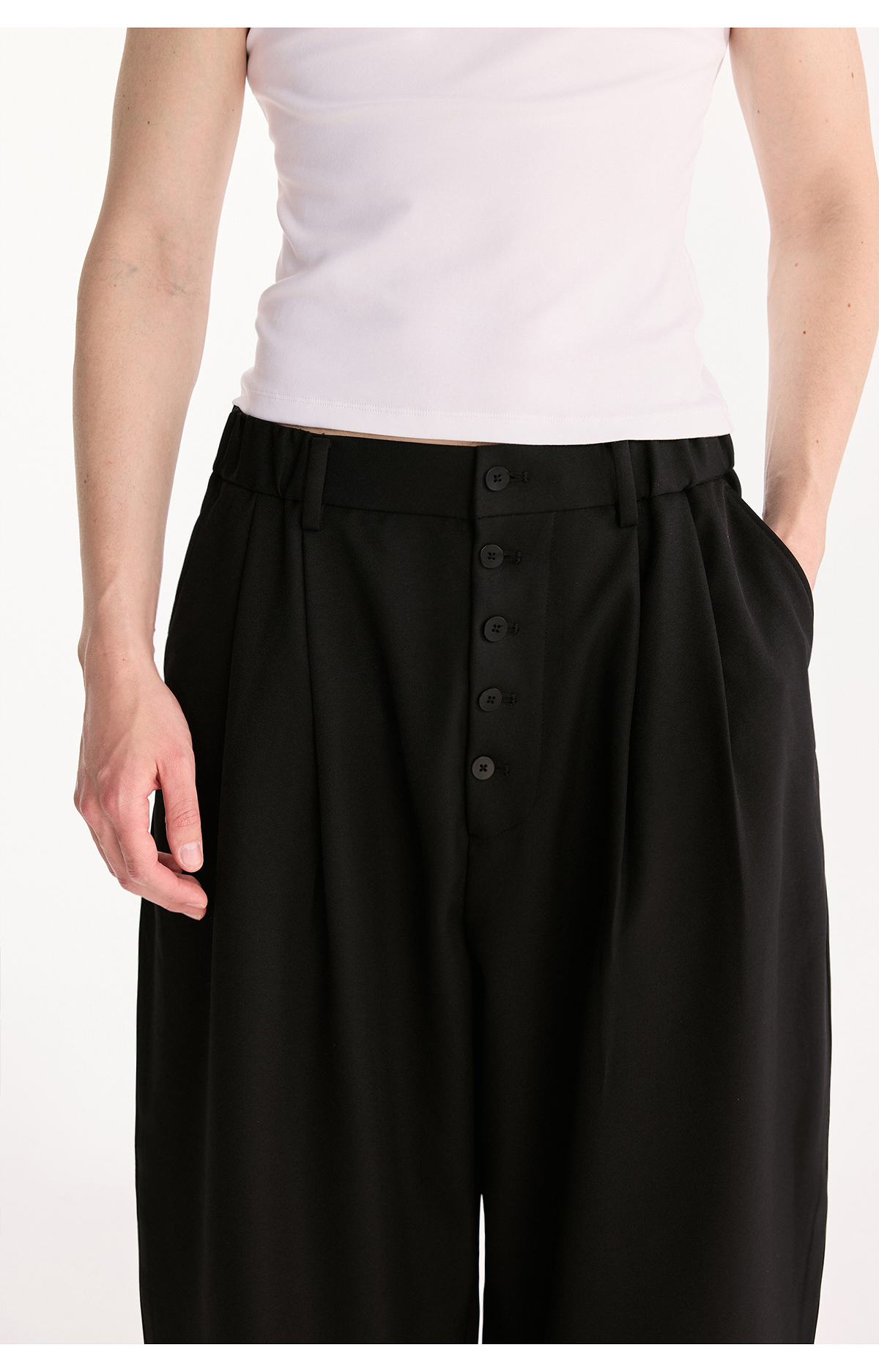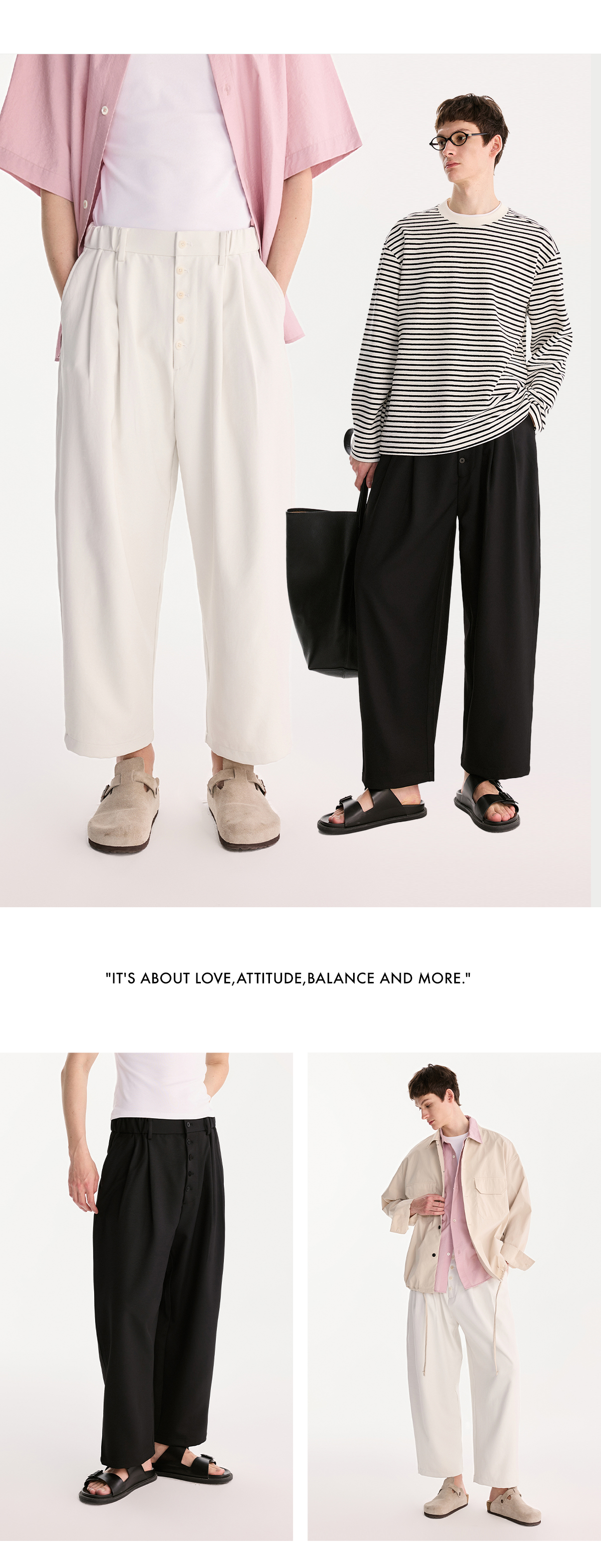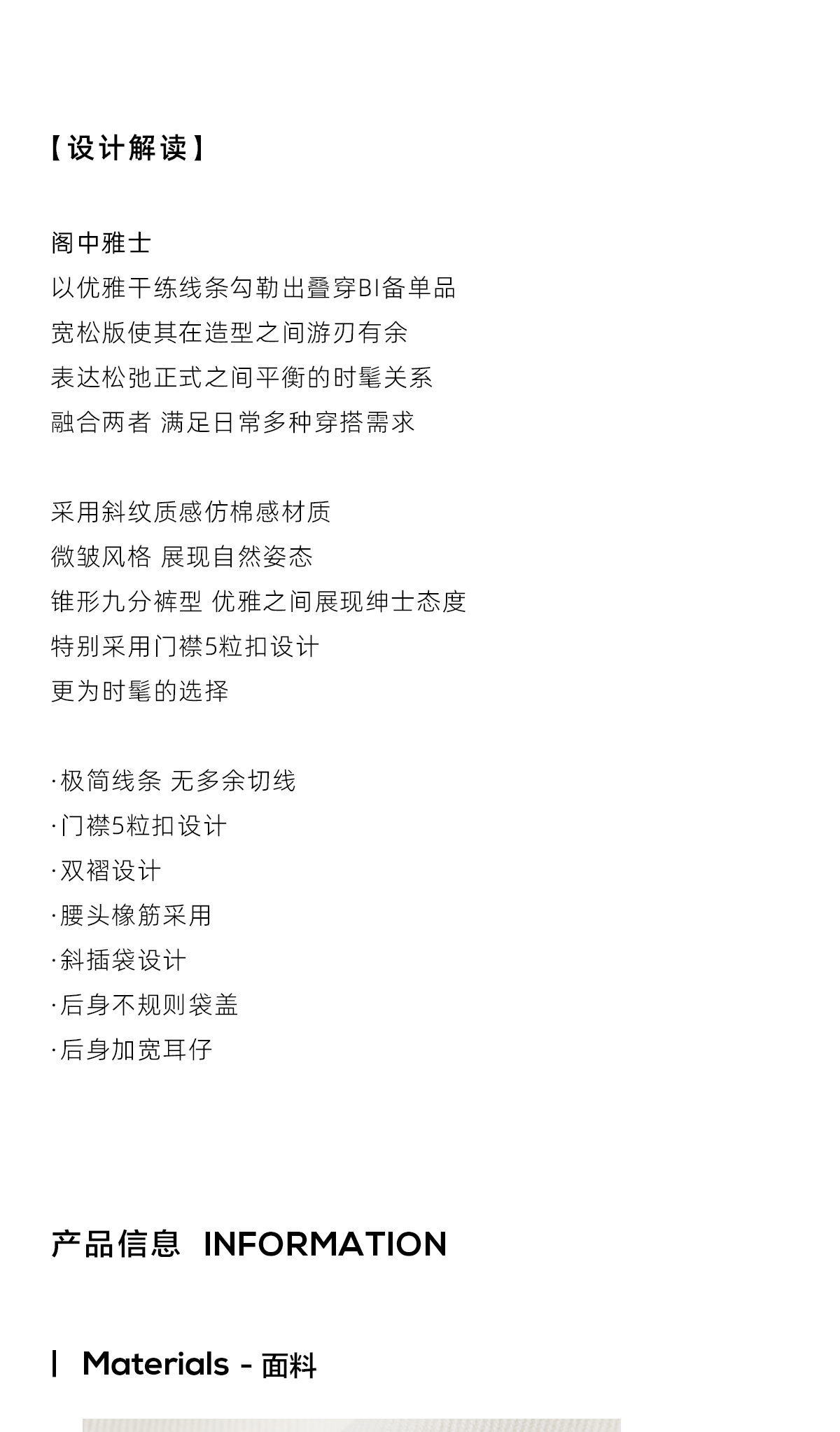棉仓3621018006-【阁中雅士】落档门襟纽扣装饰九分日式休闲裤