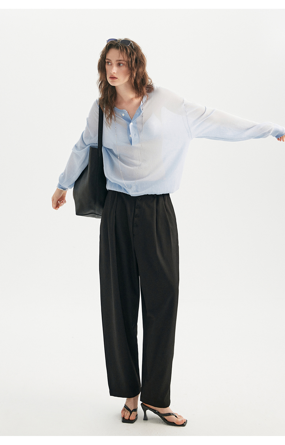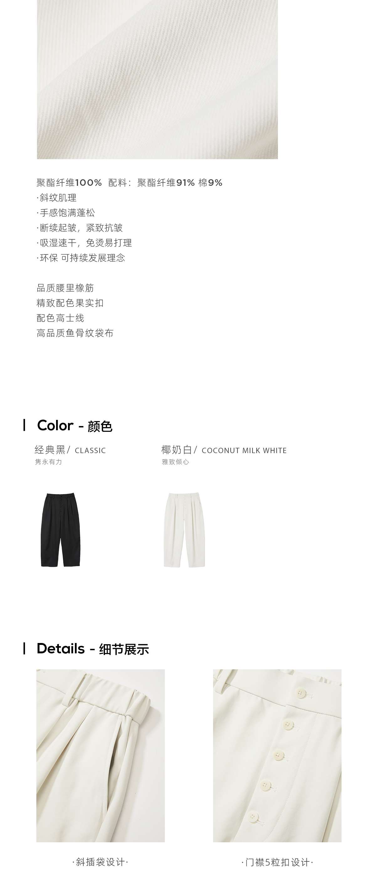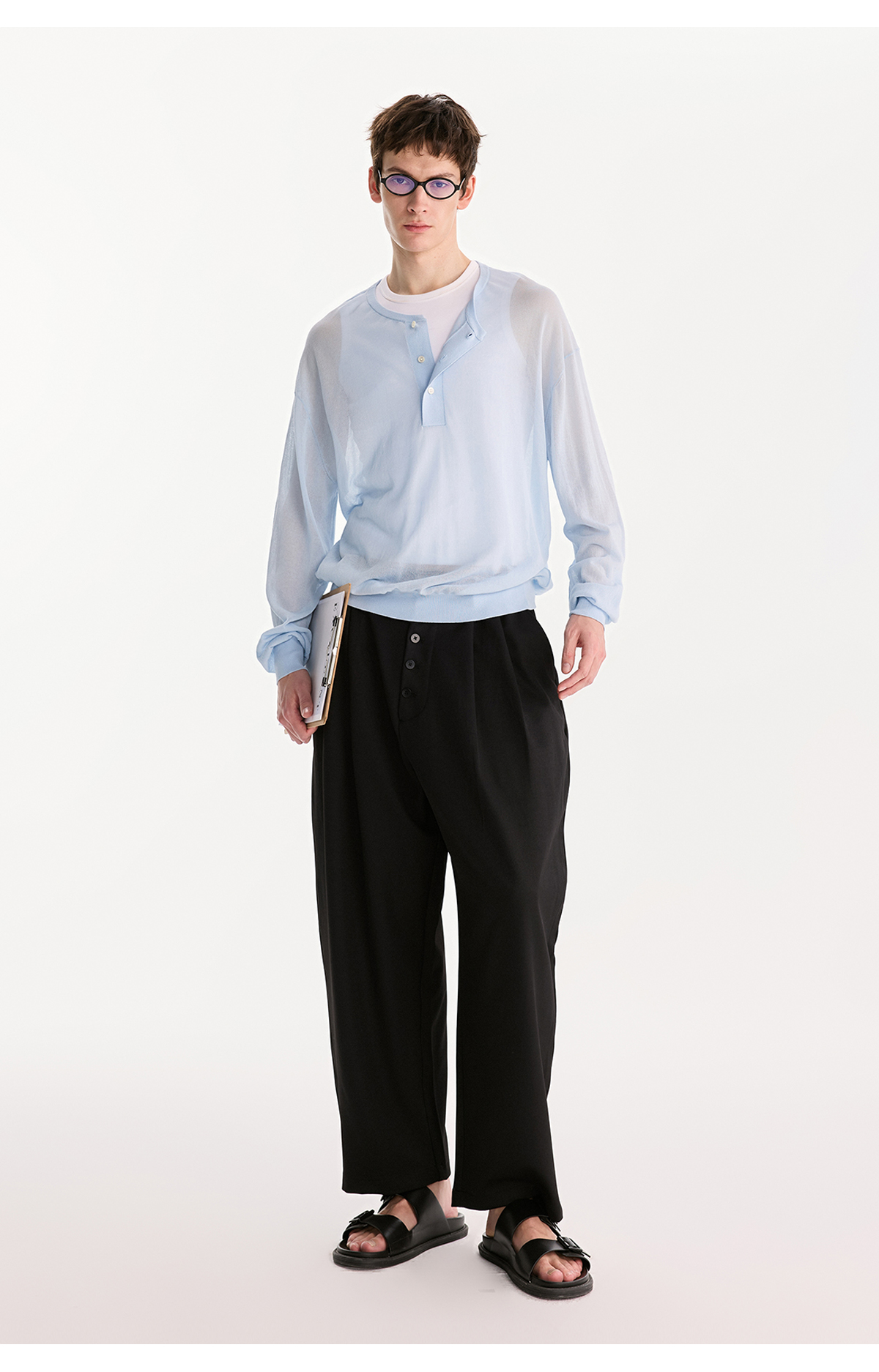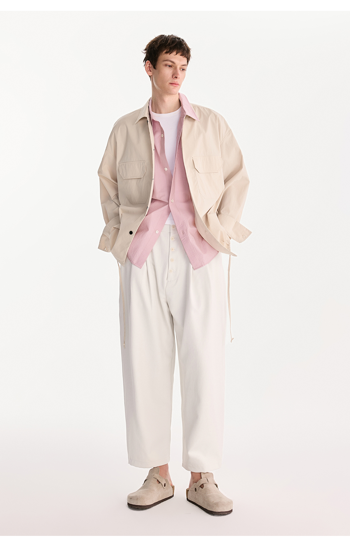 棉仓3621018006-【阁中雅士】落档门襟纽扣装饰九分日式休闲裤