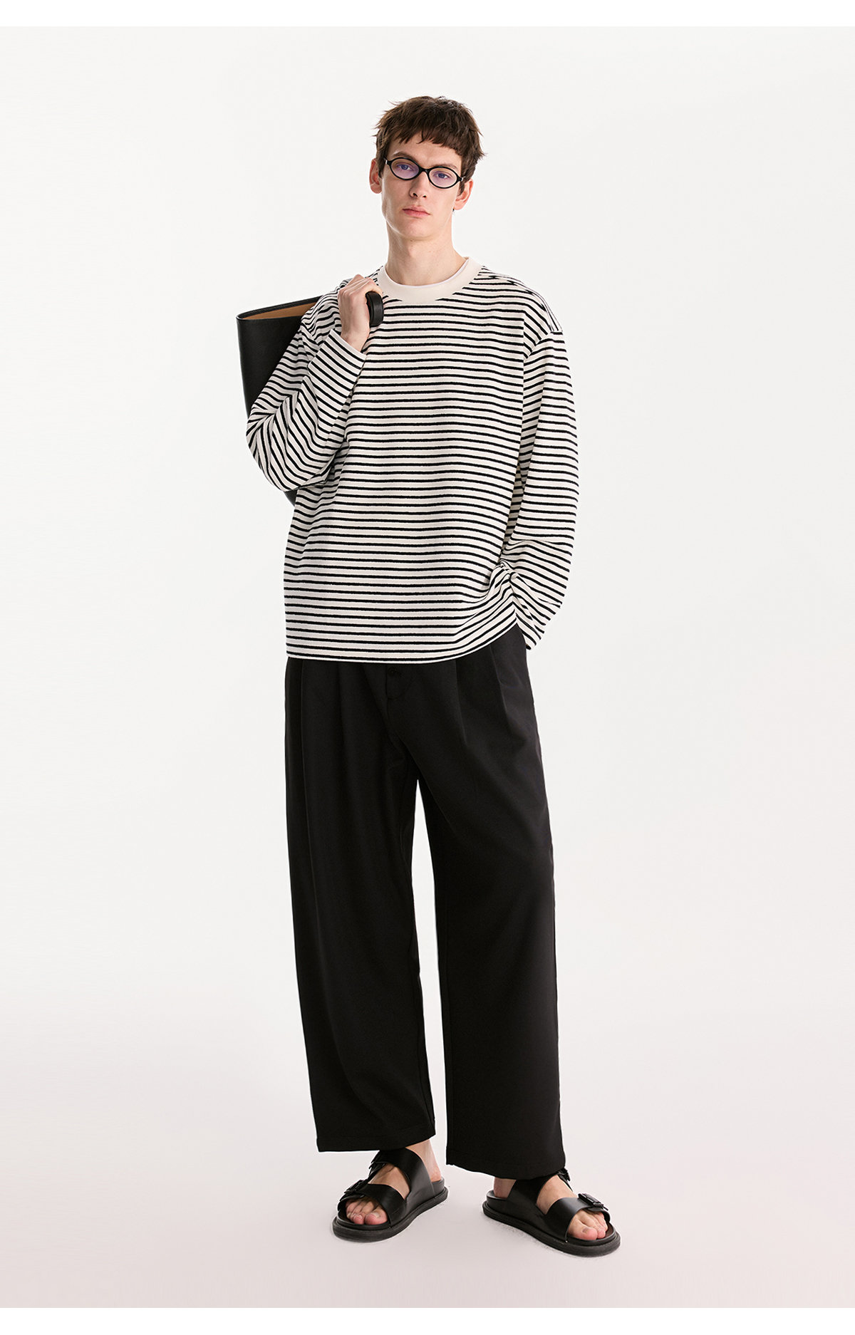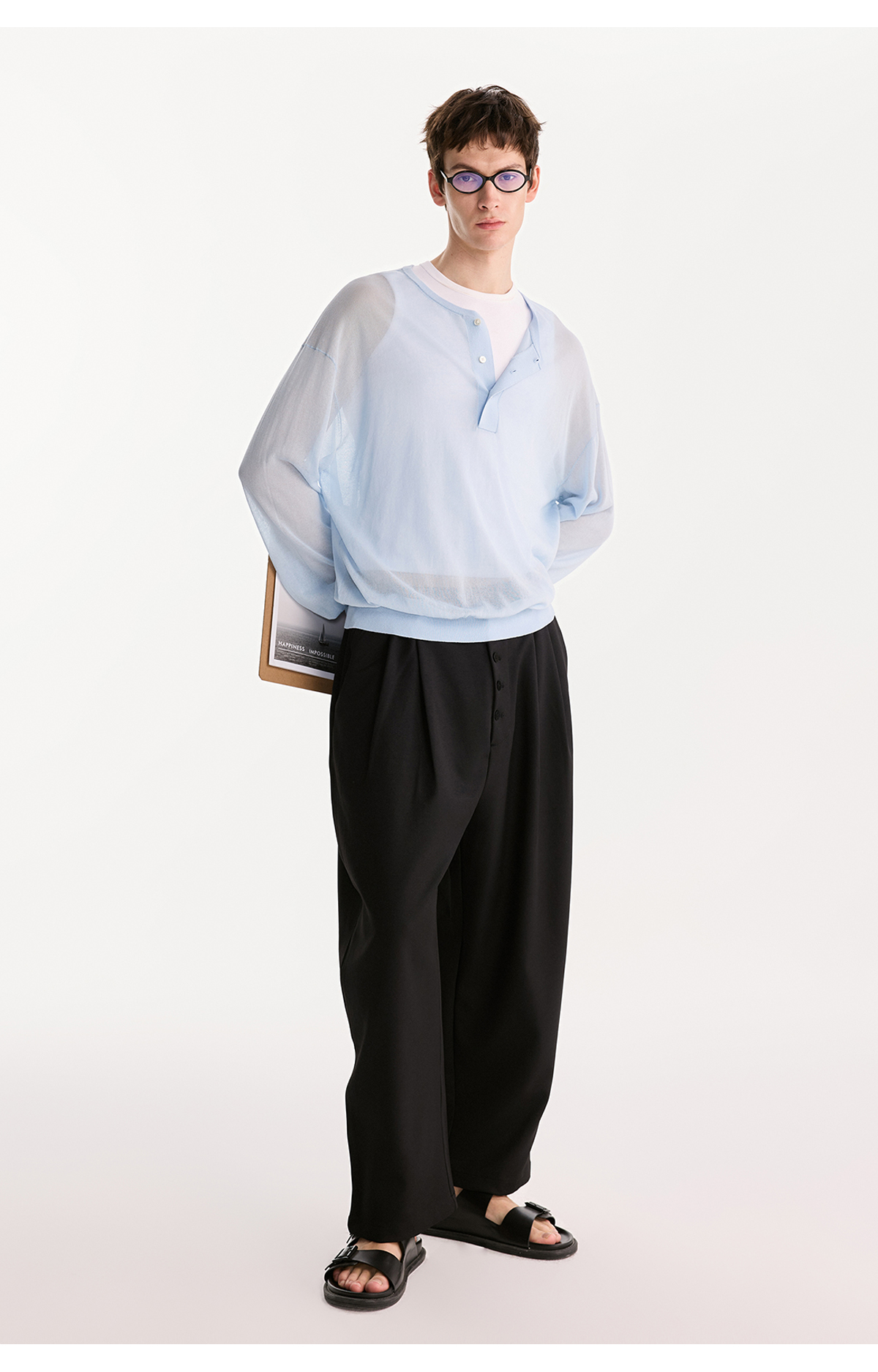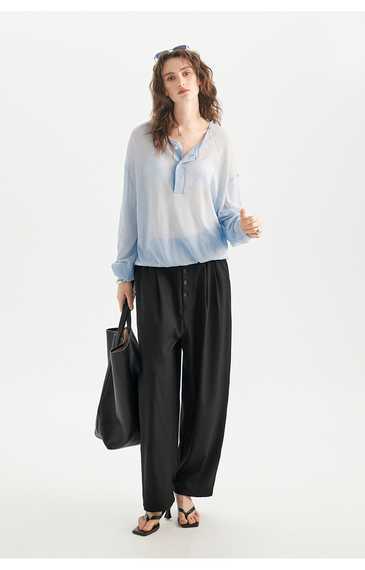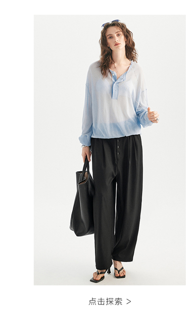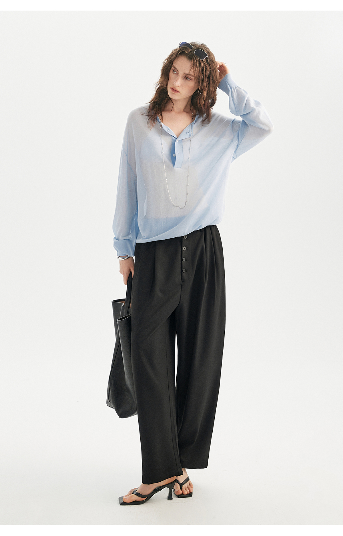 棉仓3621018006-【阁中雅士】落档门襟纽扣装饰九分日式休闲裤
