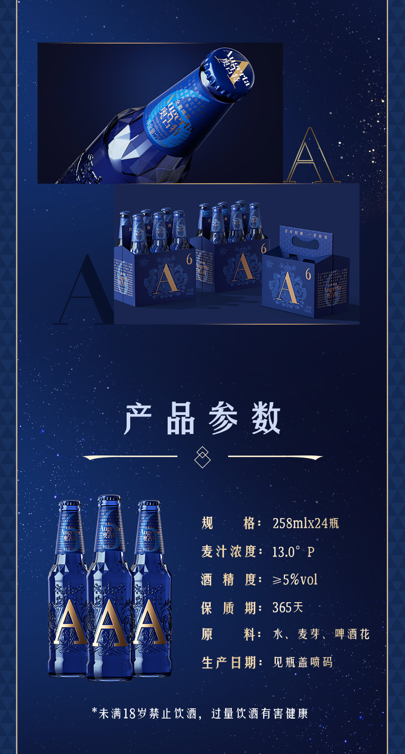青岛啤酒 奥古特啤酒「A6」13度258*6*4牛卡提篮箱啤 I啤酒