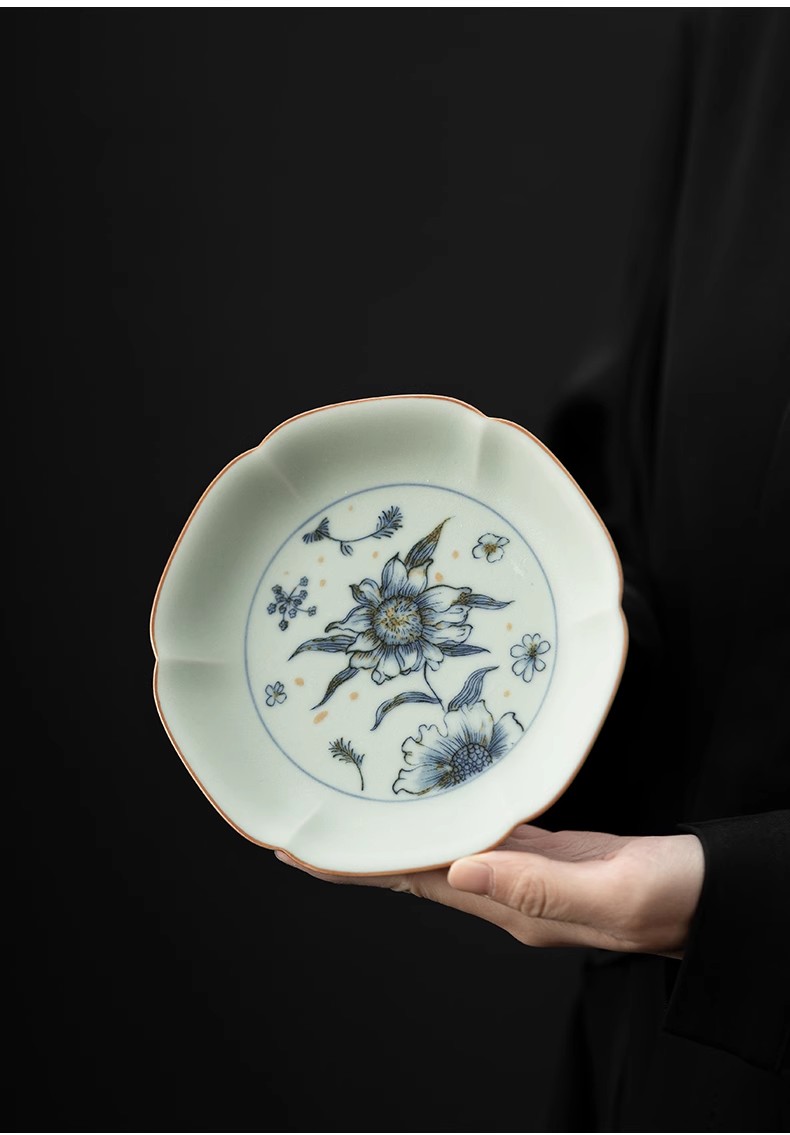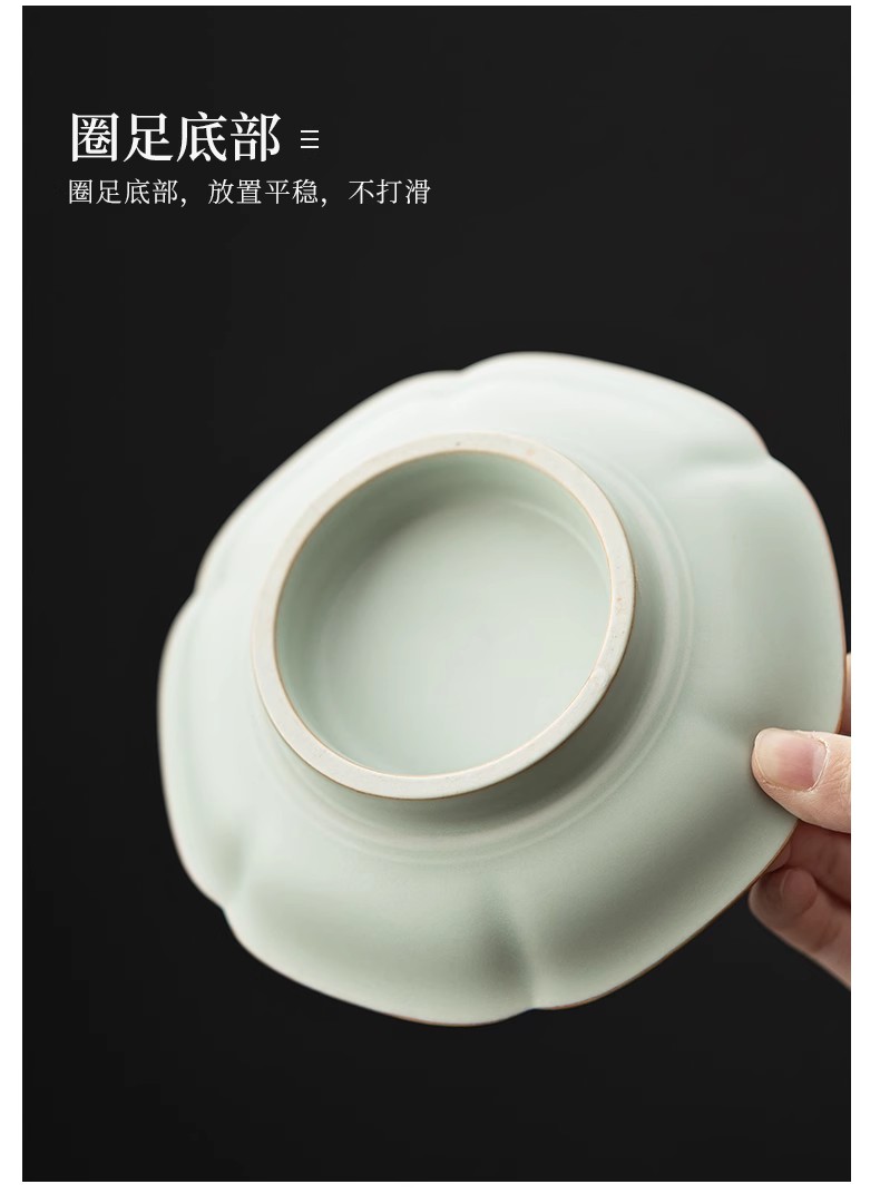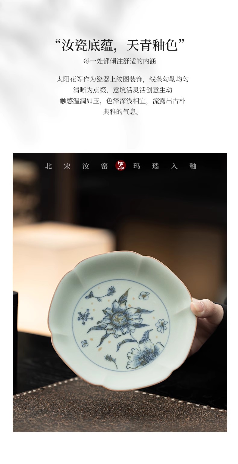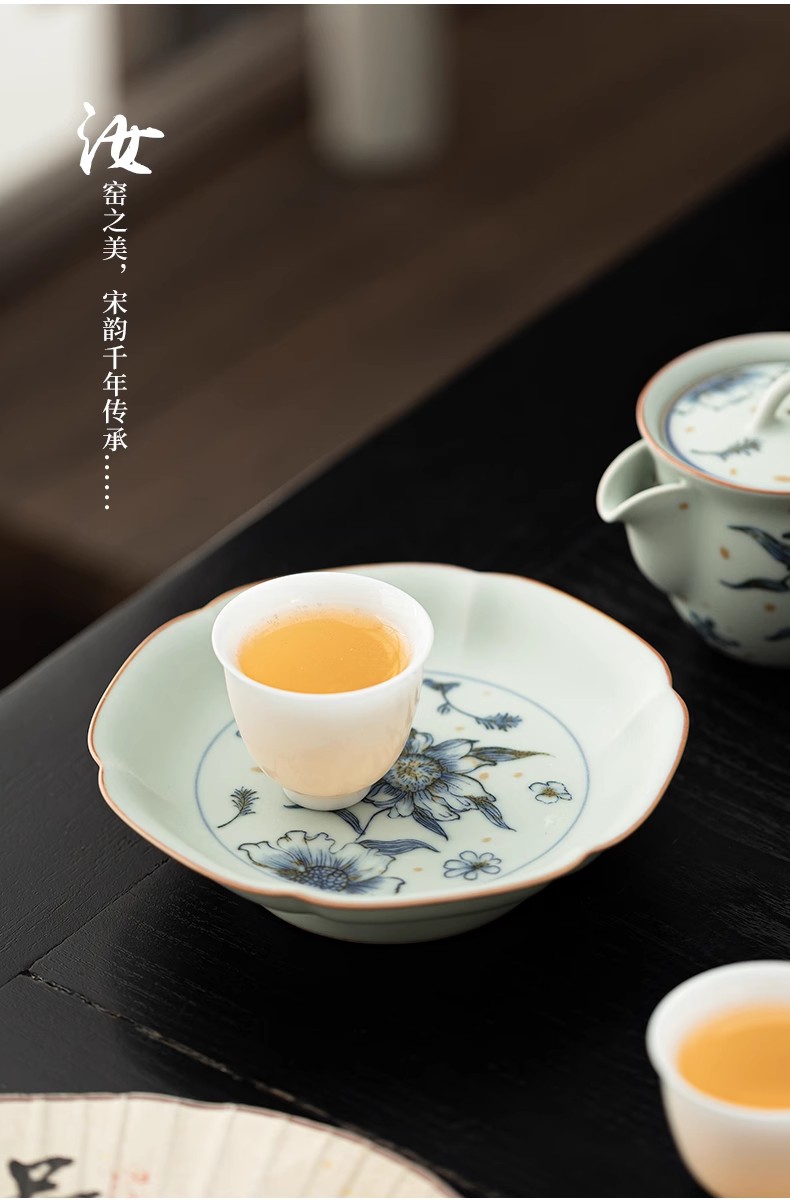 汝窑亚青釉下彩青花壶承果盘干泡盘家用点心果盘茶台配件盖碗建水