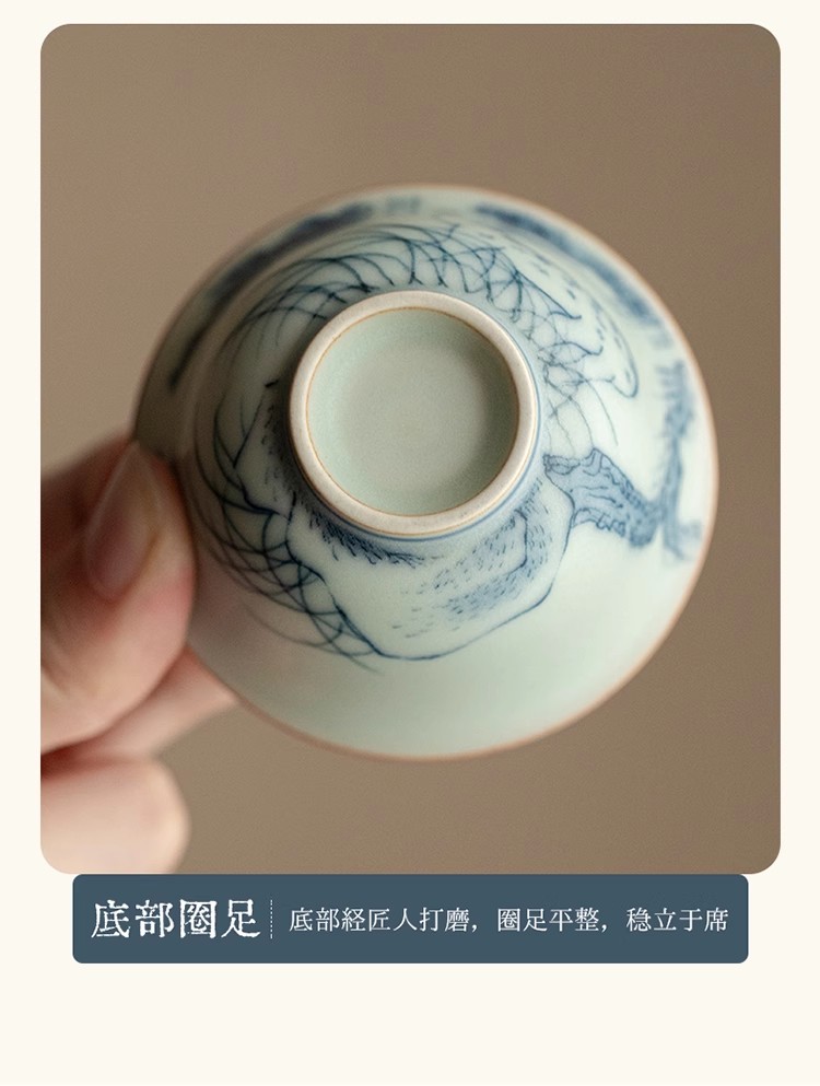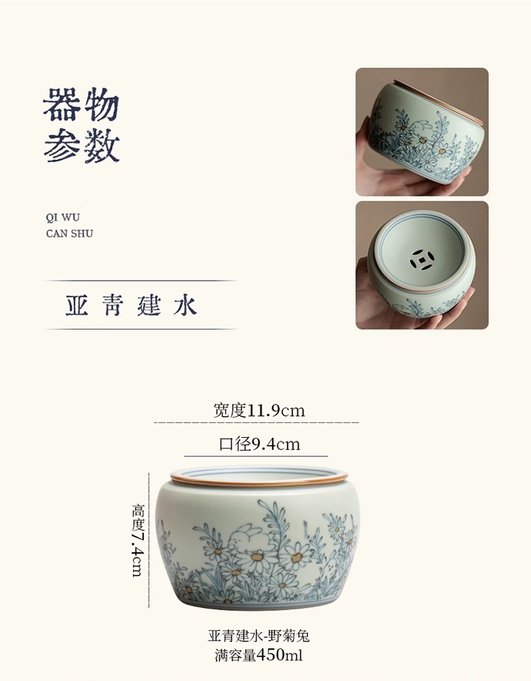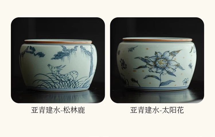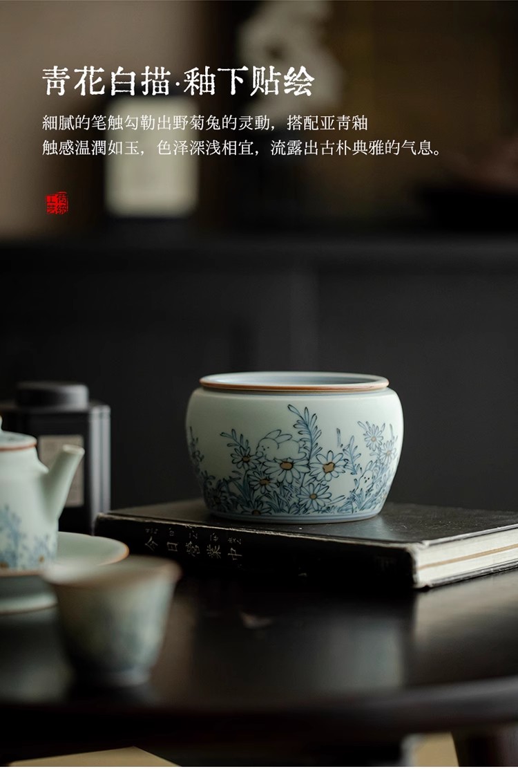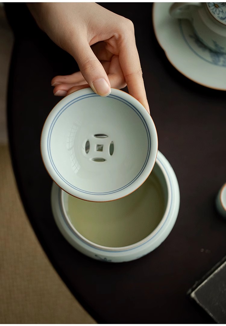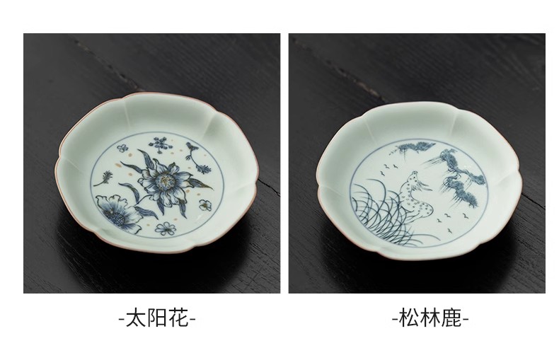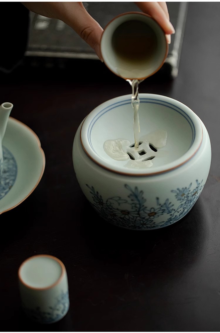 汝窑亚青釉下彩青花壶承果盘干泡盘家用点心果盘茶台配件盖碗建水