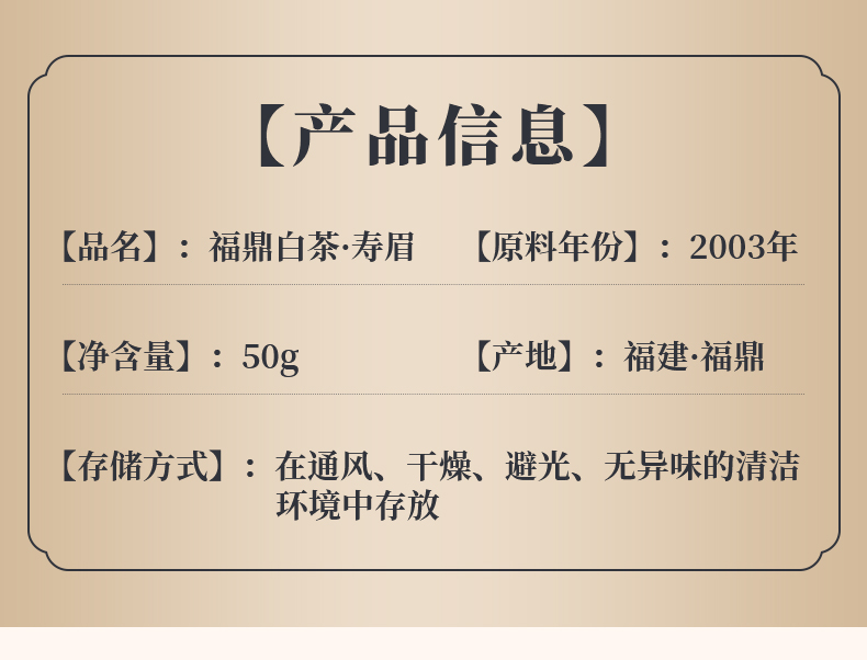 鼎茗荟丨 二十二年陈 珍藏老白茶 福鼎白茶 2003年 50g