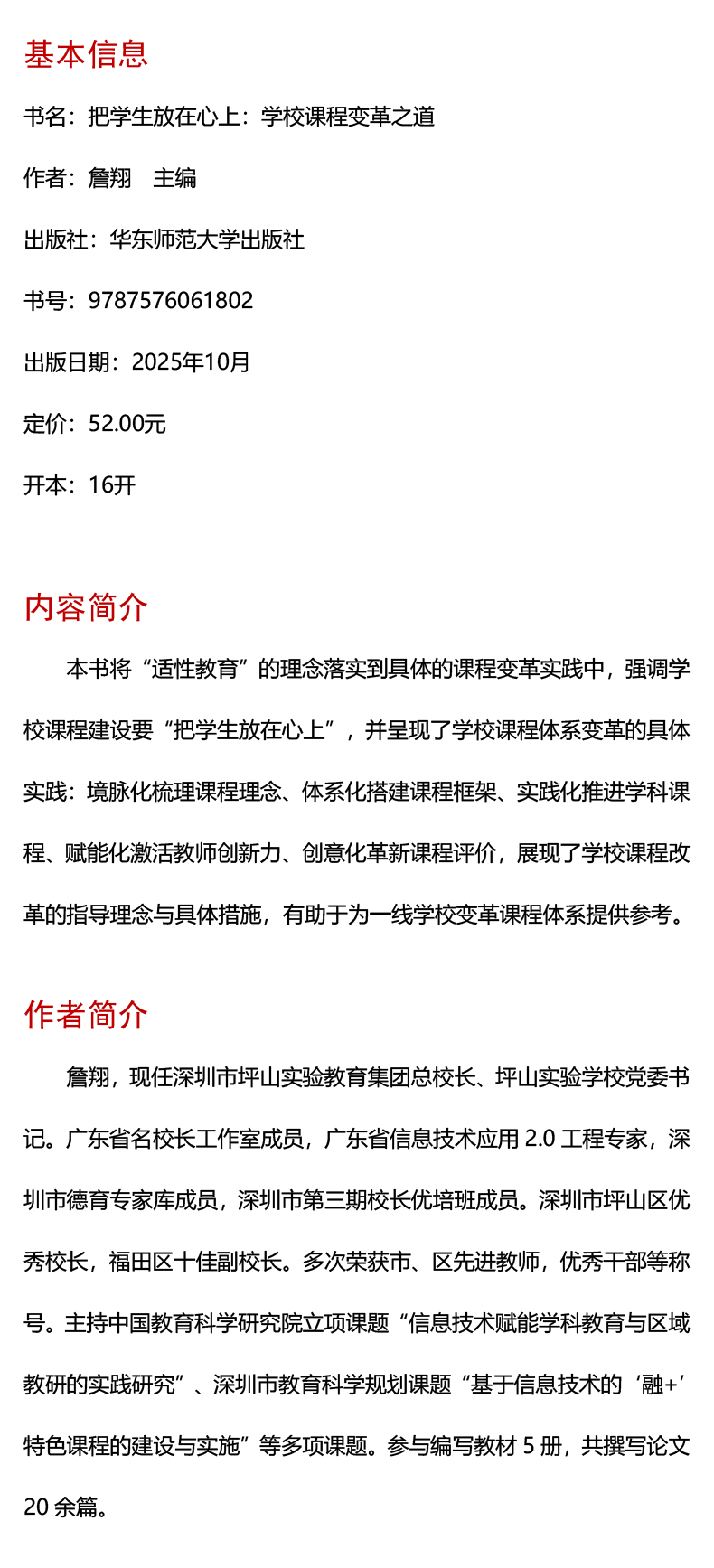把学生放在心上 学校课程变革之道 詹翔 以学生为中心 建设学校特色课程体系 中小学案例