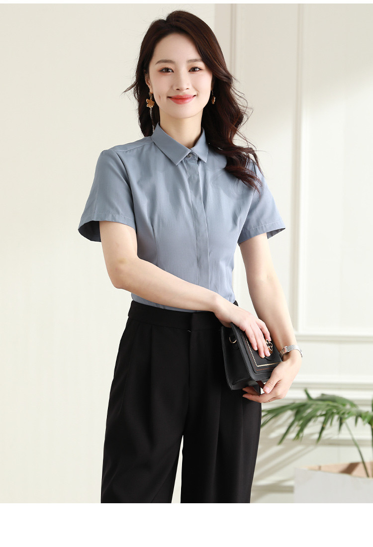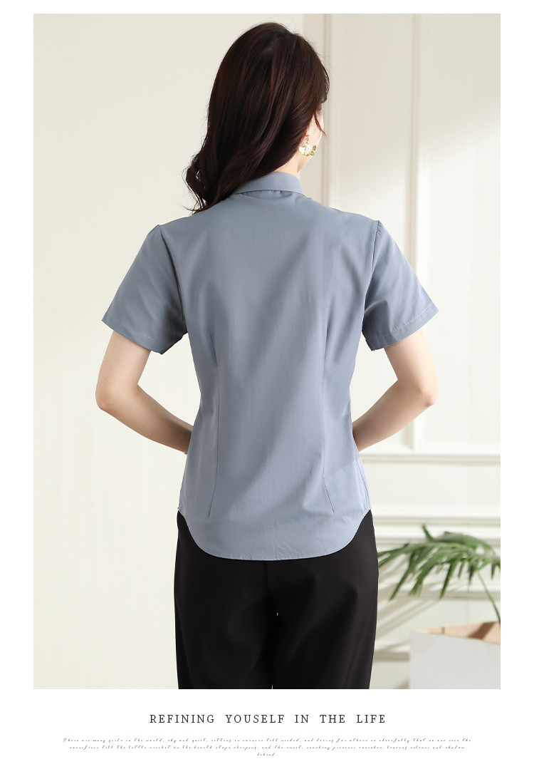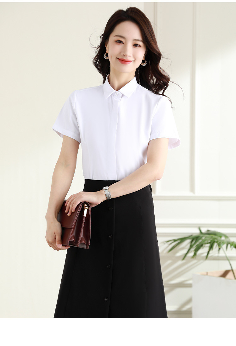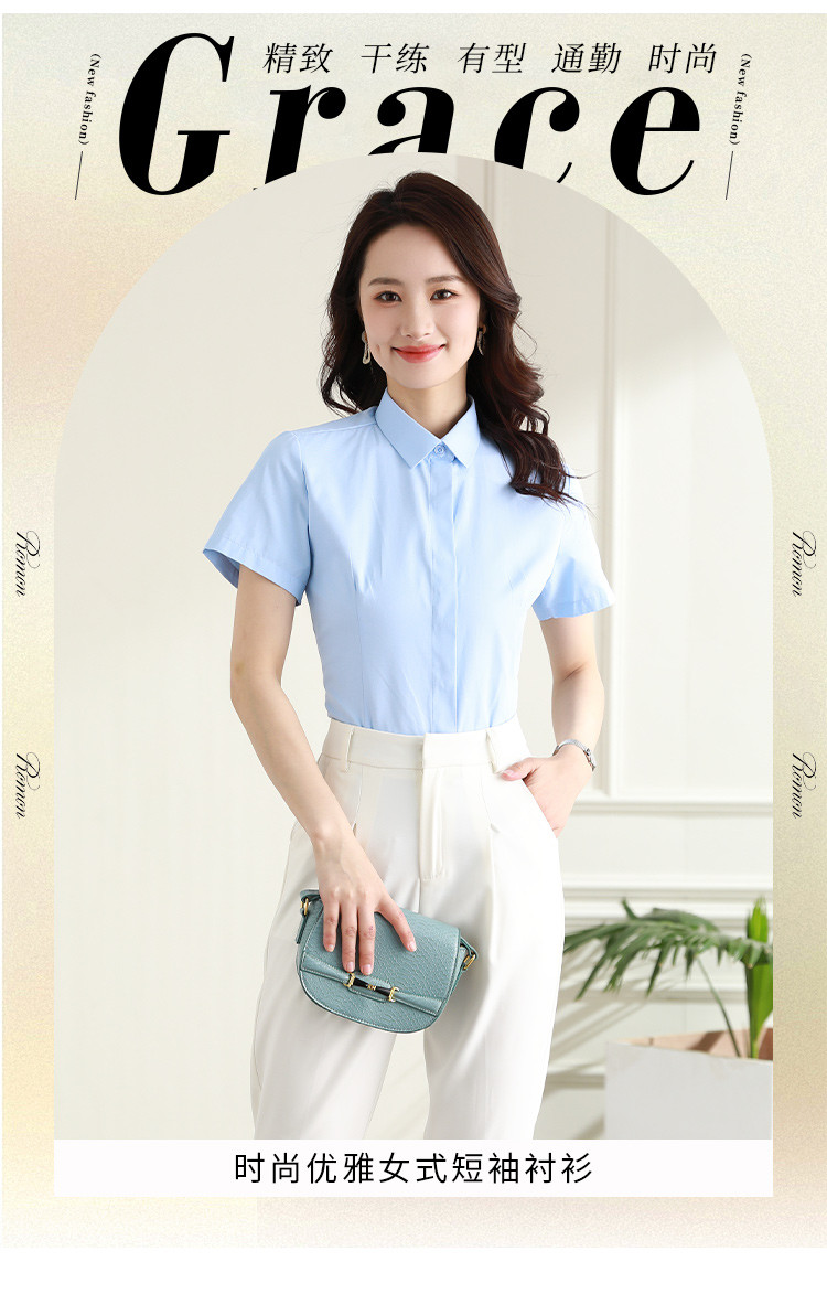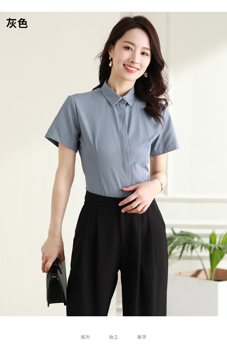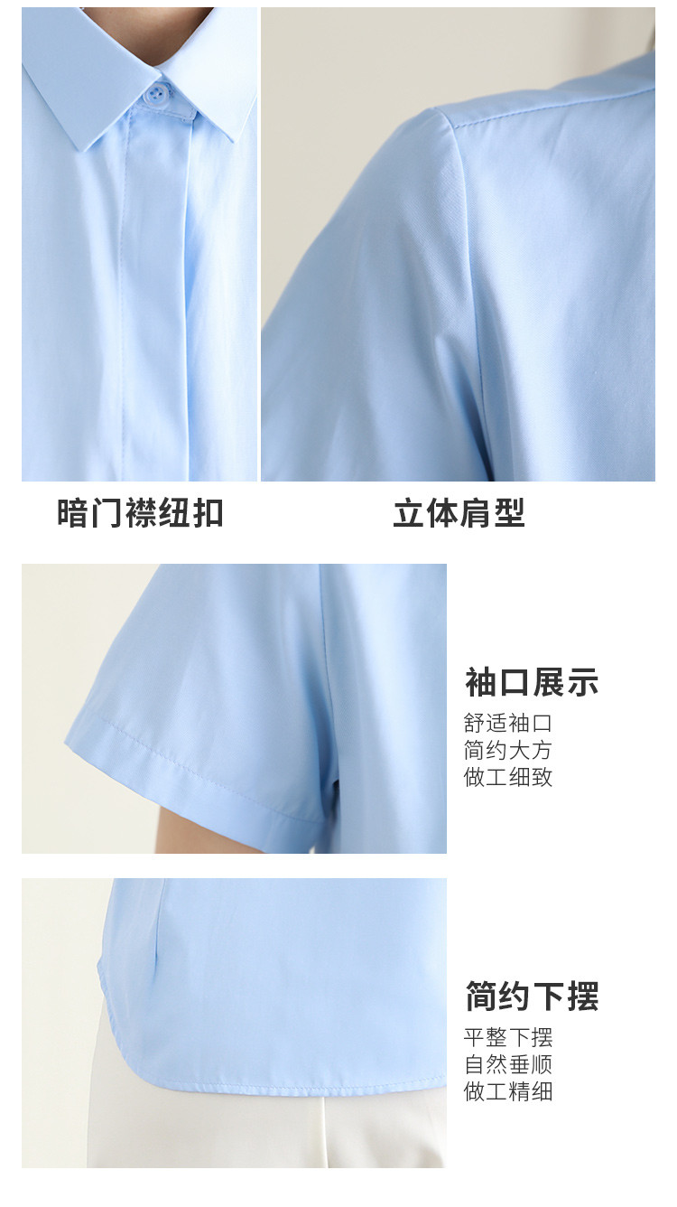 罗蒙夏季女装短袖棉质衬衫女士修身显瘦暗门襟商务通勤职业OL上班衬衣女