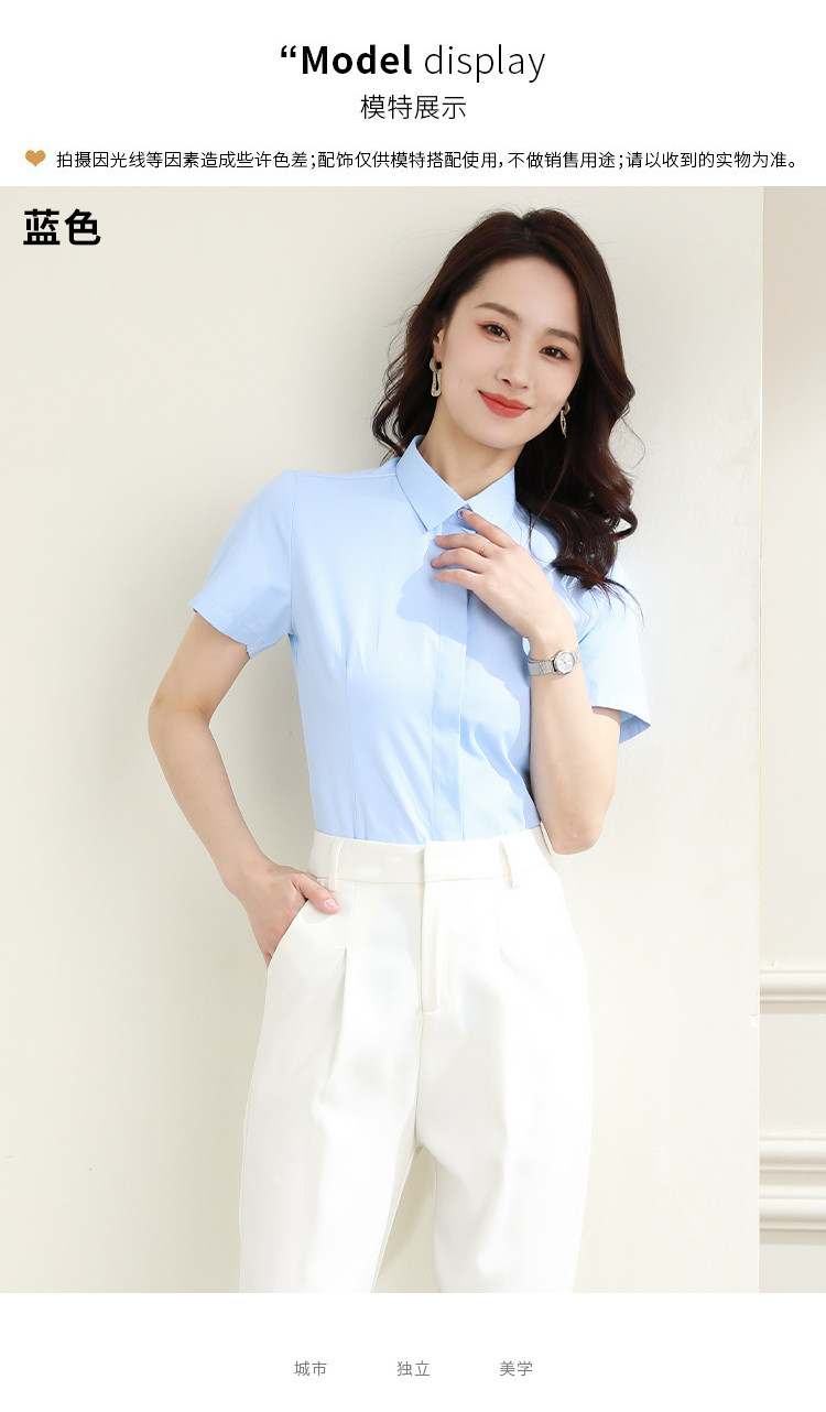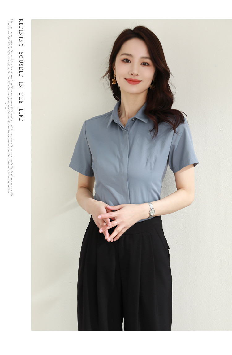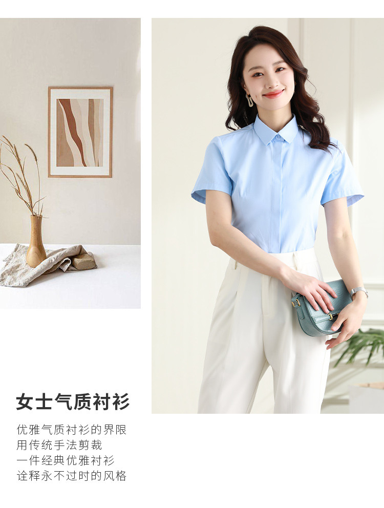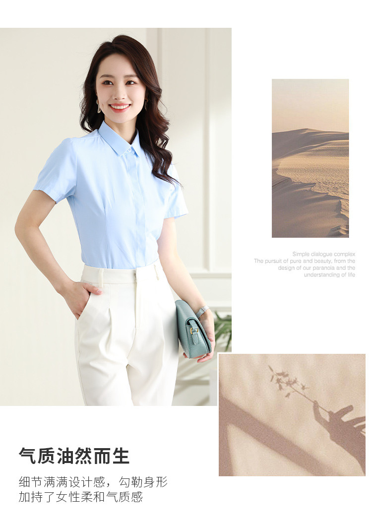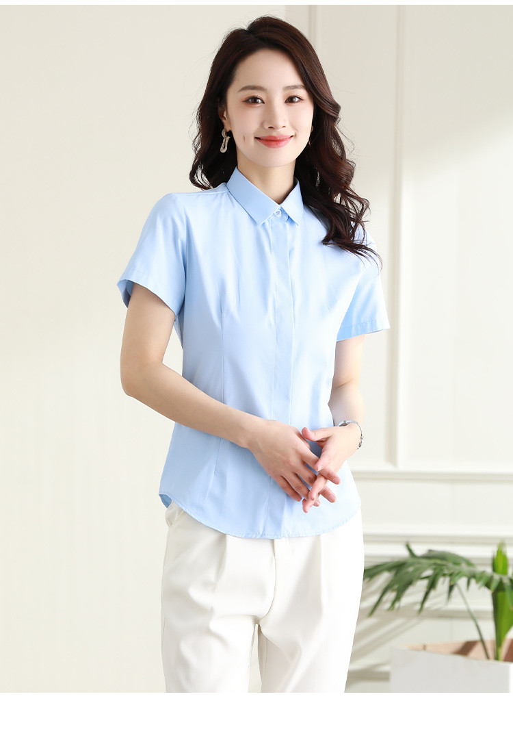 罗蒙夏季女装短袖棉质衬衫女士修身显瘦暗门襟商务通勤职业OL上班衬衣女