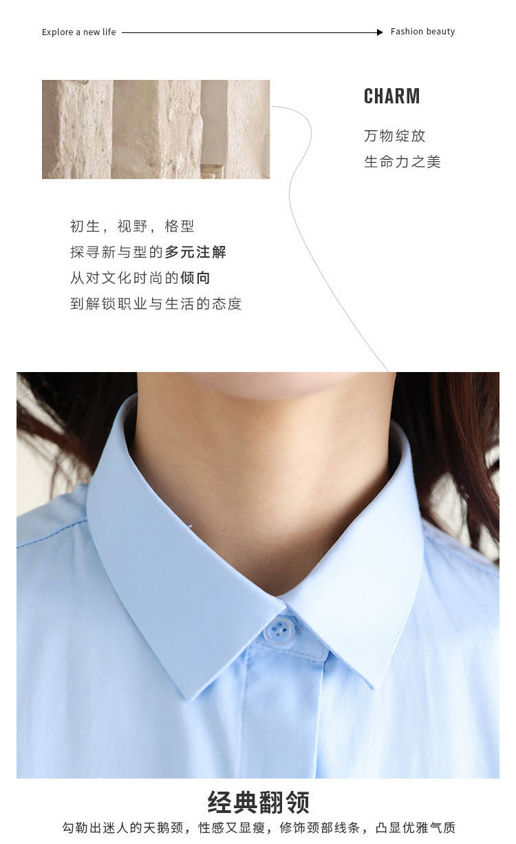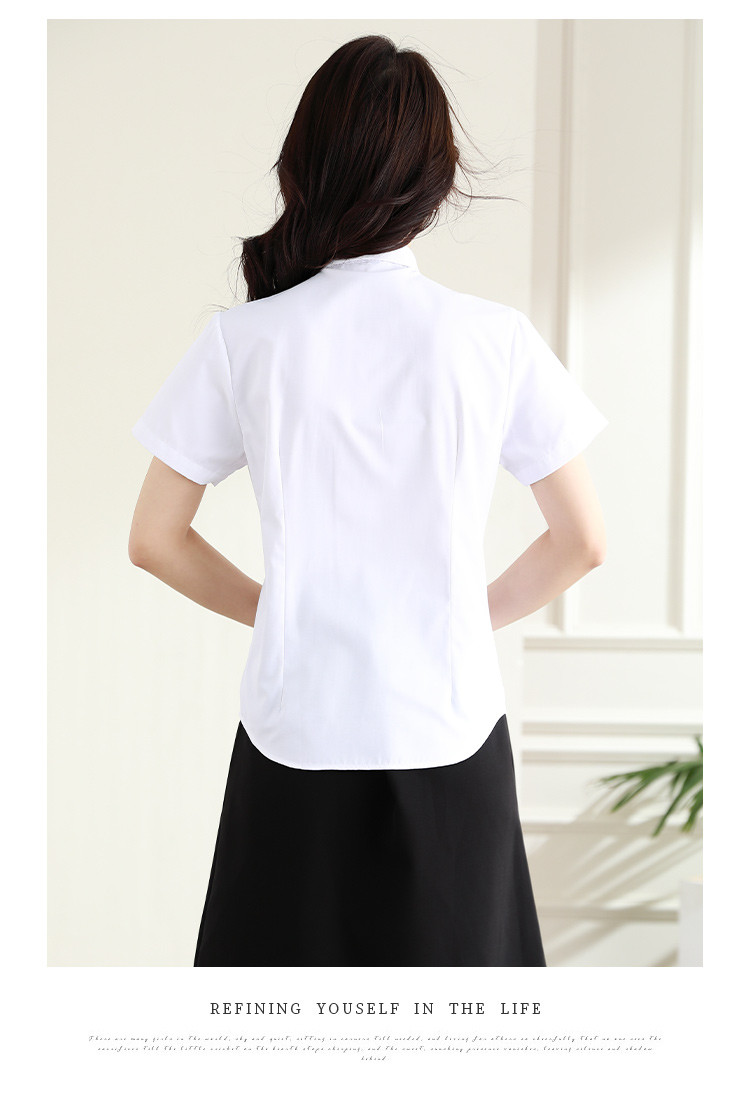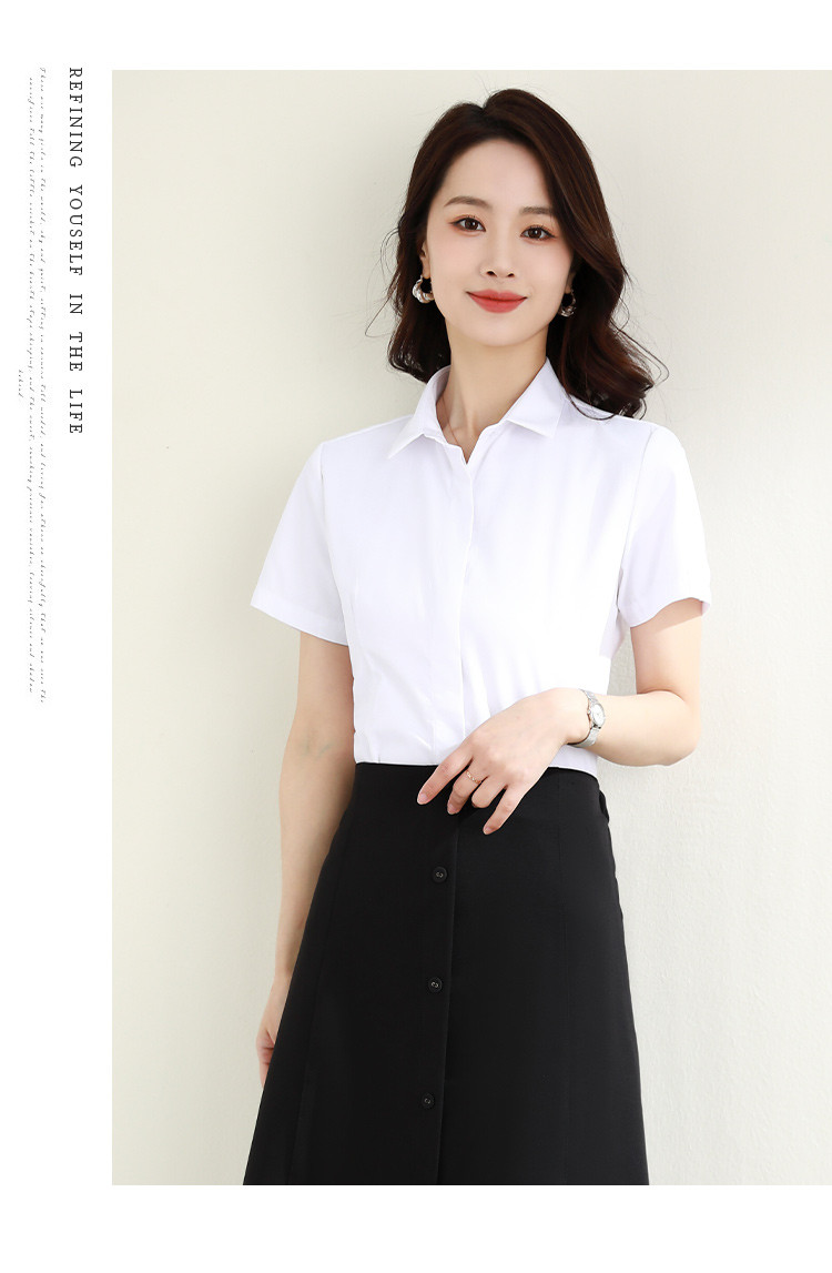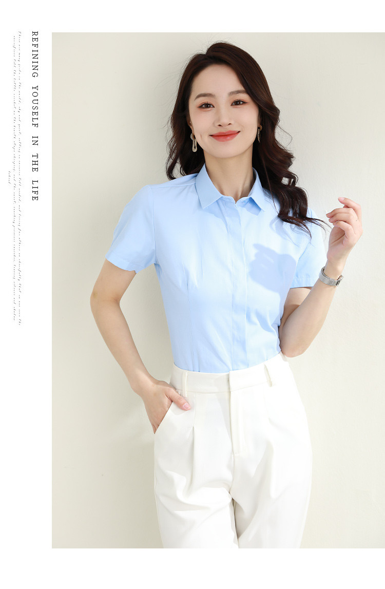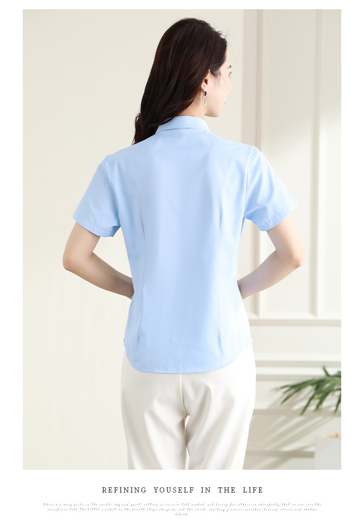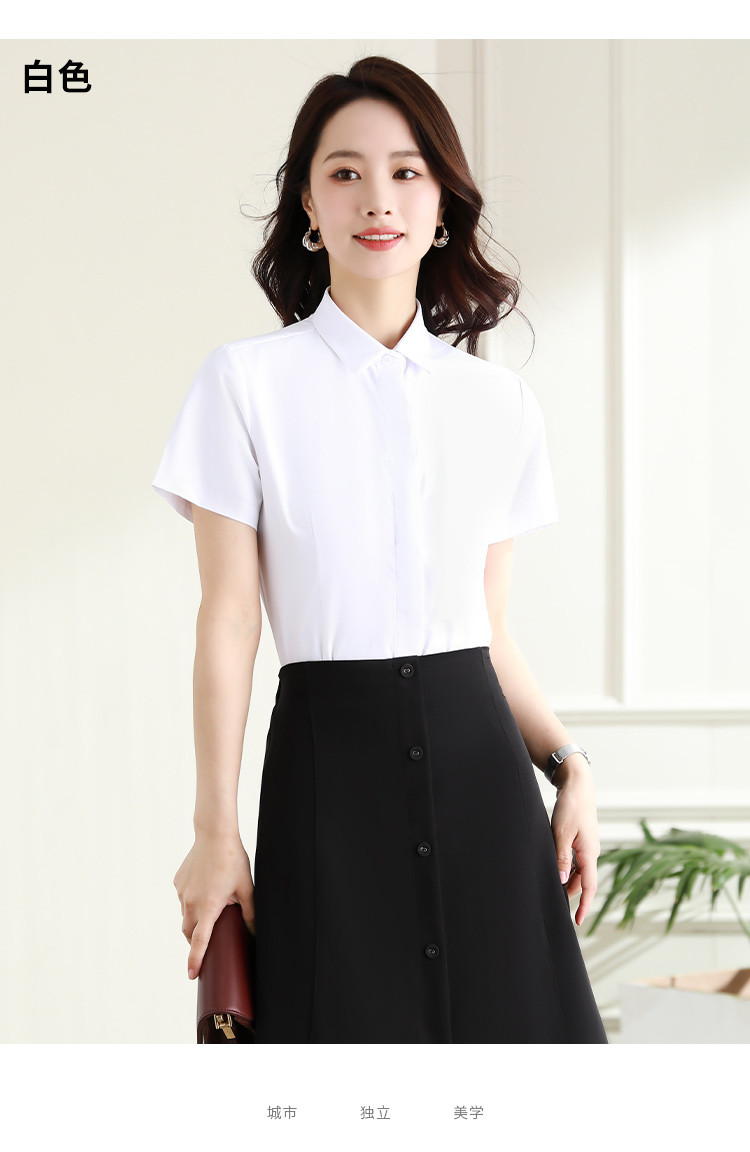罗蒙夏季女装短袖棉质衬衫女士修身显瘦暗门襟商务通勤职业OL上班衬衣女