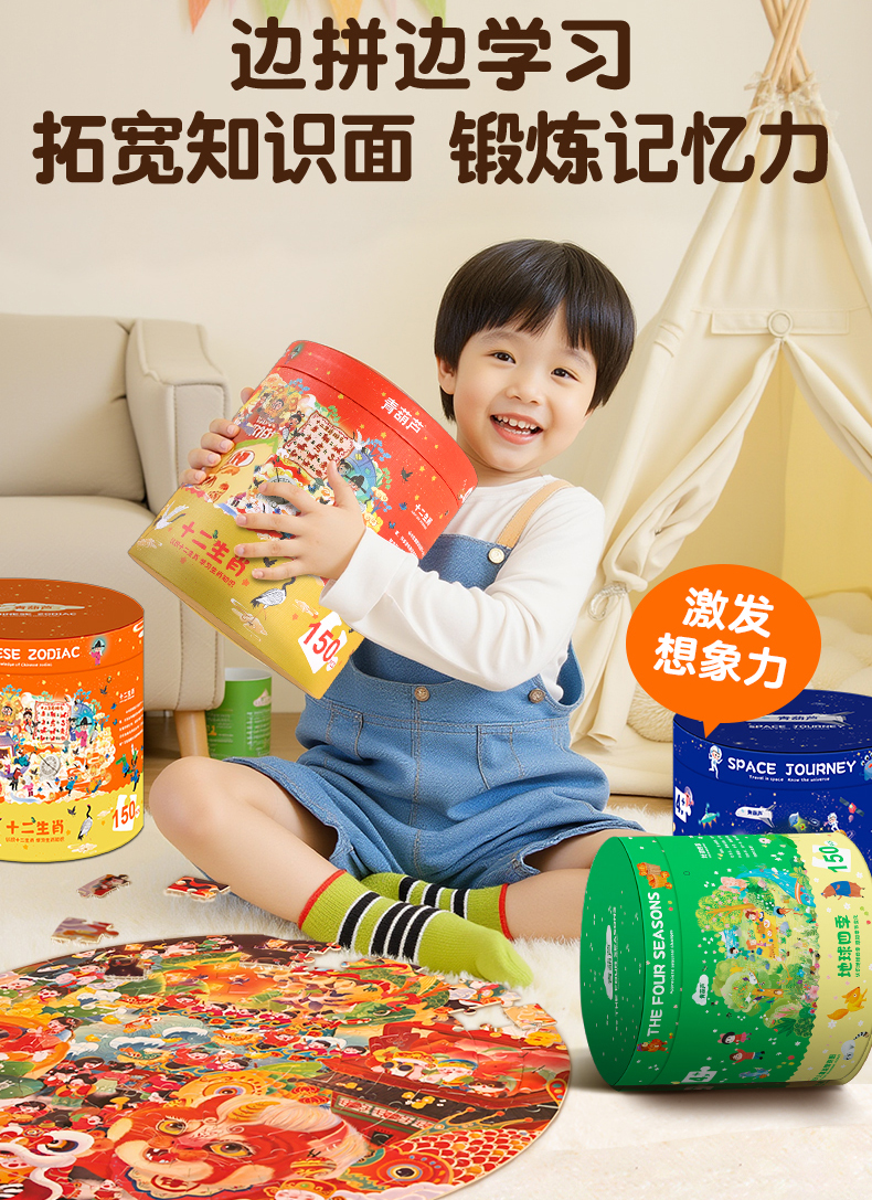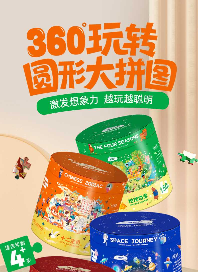 【青葫芦】360°玩转拼图 地球四季+太空之旅+欢乐节日+十二生肖 4岁+