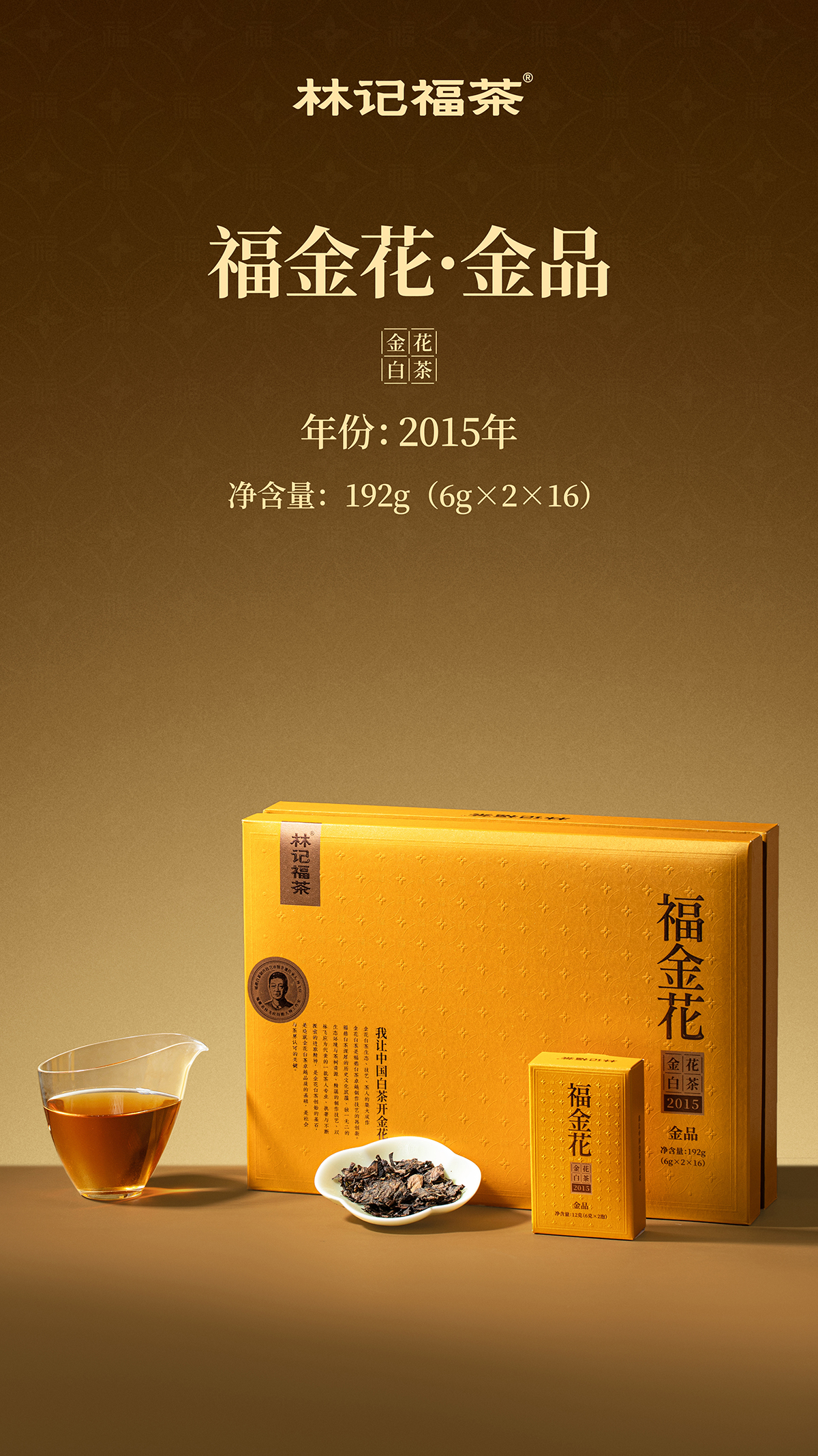 福金花·撬片紧压金花2015·金品礼盒192g(6g*2*16)
