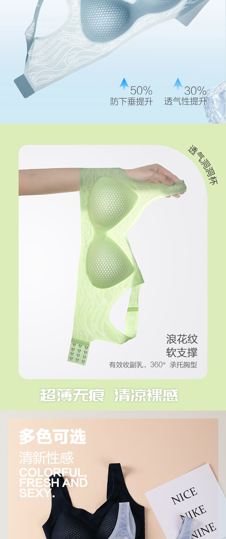 【清凉裸感❗️黑科技空气杯内衣】夏季新款无痕果冻超薄冰感浪花 女轻薄透气纳米洞洞杯交叉镂空聚拢上托美胸文胸粉丝专属