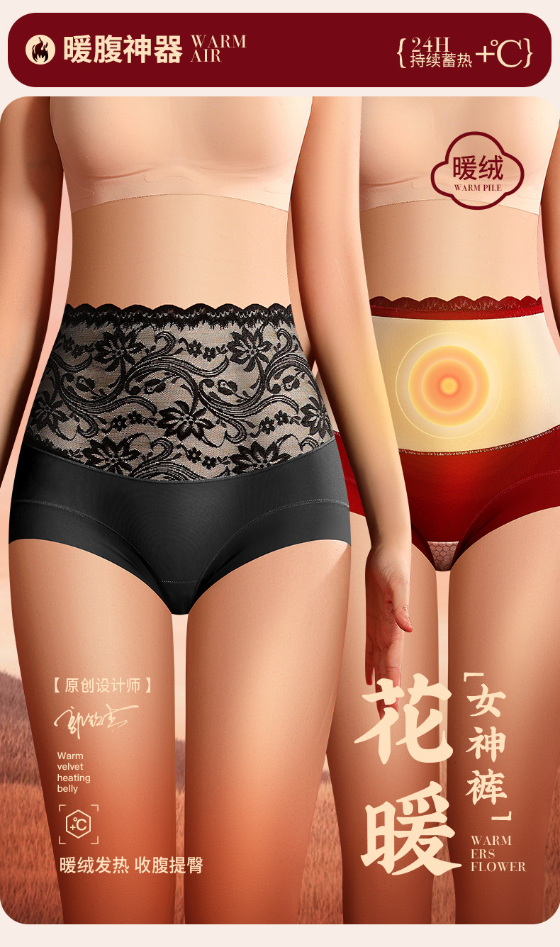 【秋冬新品❗️10A暖绒保暖收腹裤】加绒加厚,蓄热保暖,暖腹神器,收腹提臀,立显S曲线!高腰大码女士内裤宽松抑菌三角裤女