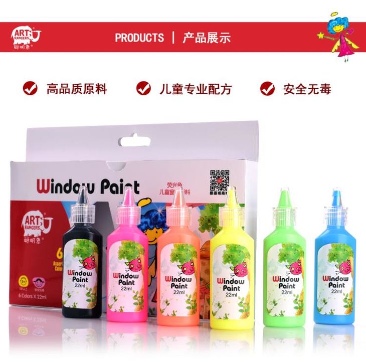 聪明象6色22ML荧光窗彩颜料仅售21.6一盒,12盒起售