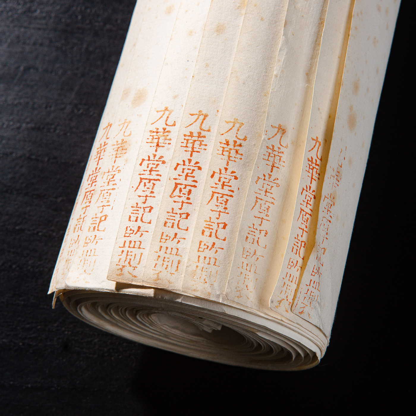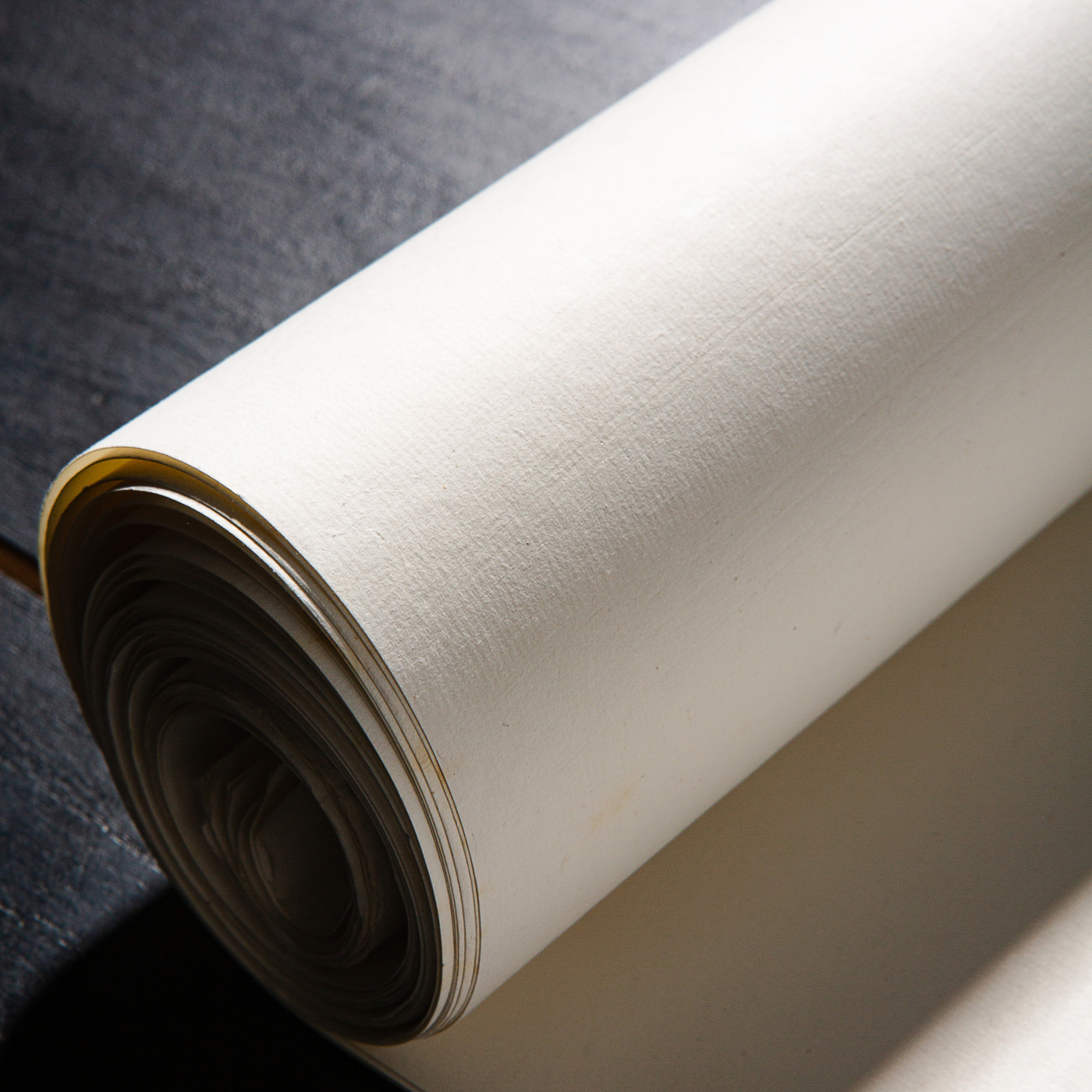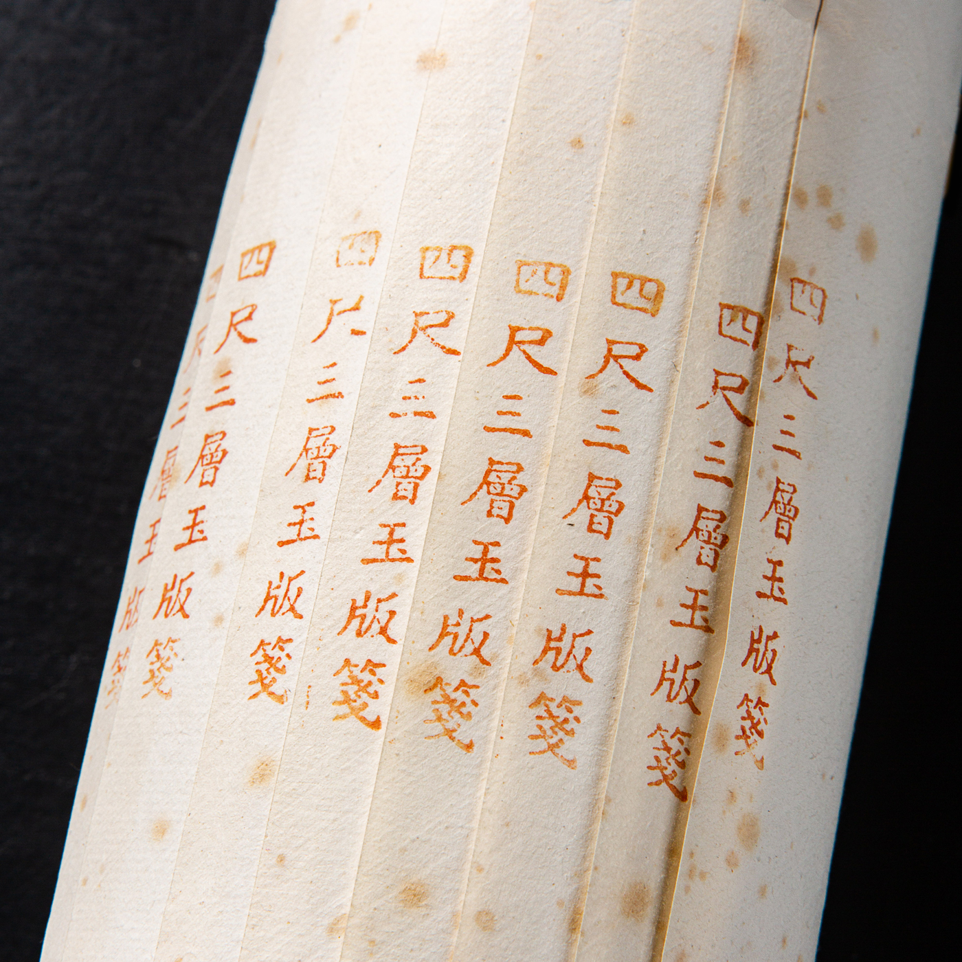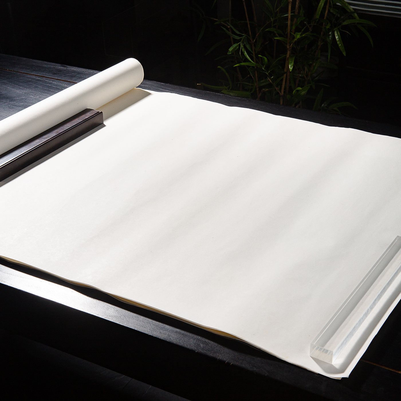 清末民国上海九华堂厚记制“四尺三层玉版笺”。其质地紧密厚实、细腻丝滑,帘纹精美,用料扎实,色泽温和古朴。此纸极罕见,收藏价值极高。