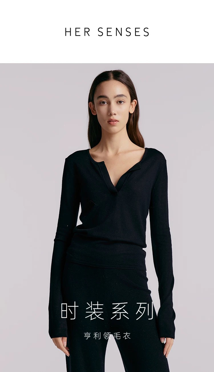 Her Senses|时装 12HPO23K1 亨利领毛衣 [ 茶灰GY18 / 黑BK01 ]