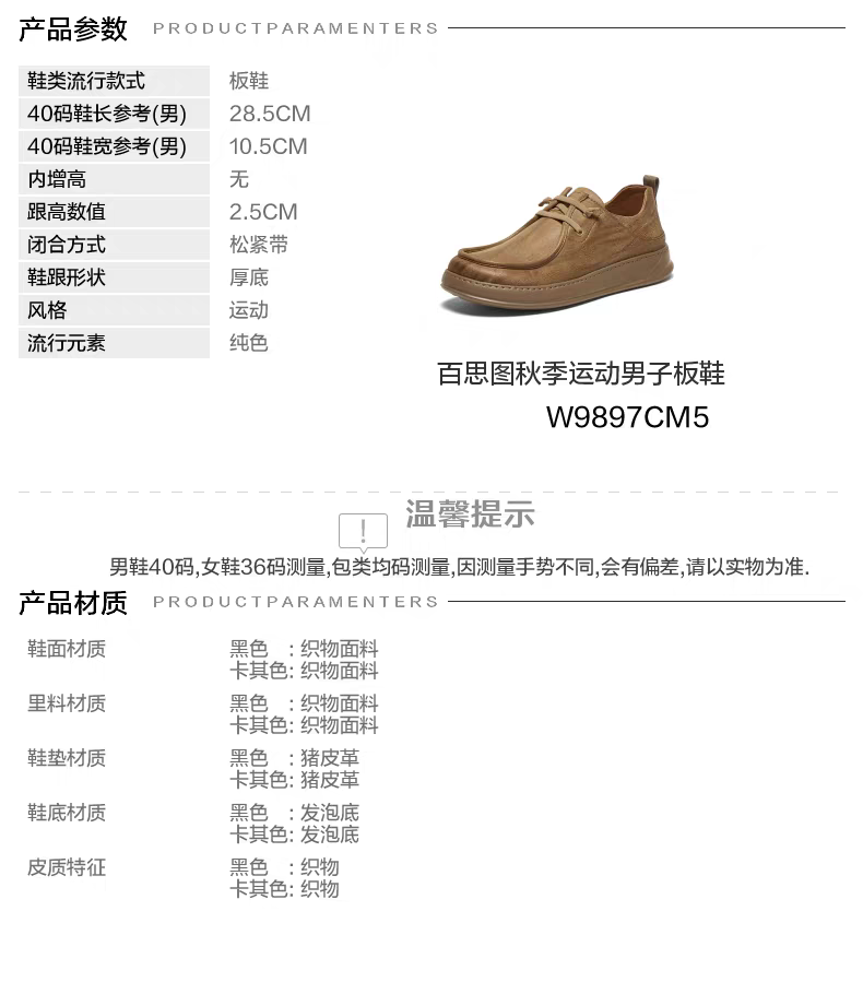 【百思图】 BF楼百思图2025秋季新款潮流厚底工装风板鞋男百搭休闲鞋W9897CM5吊牌价799.现价299