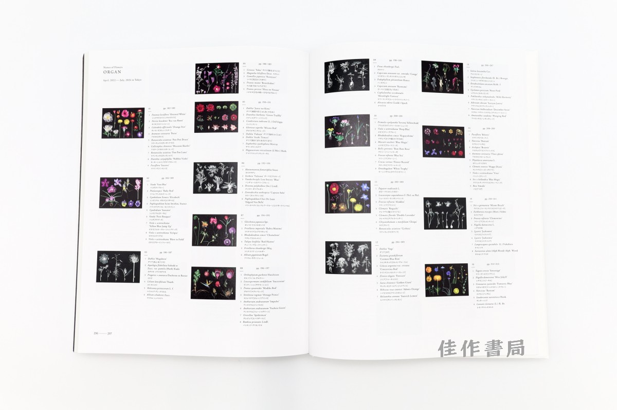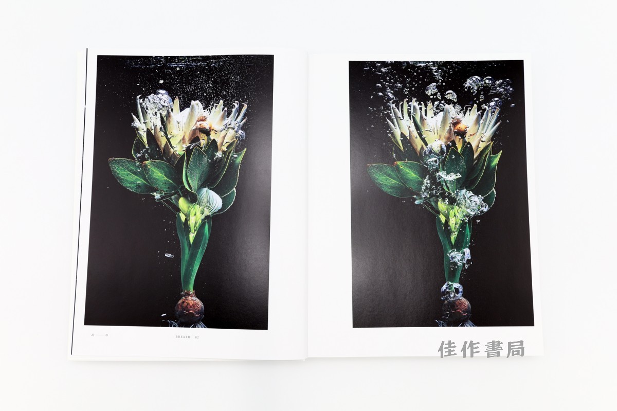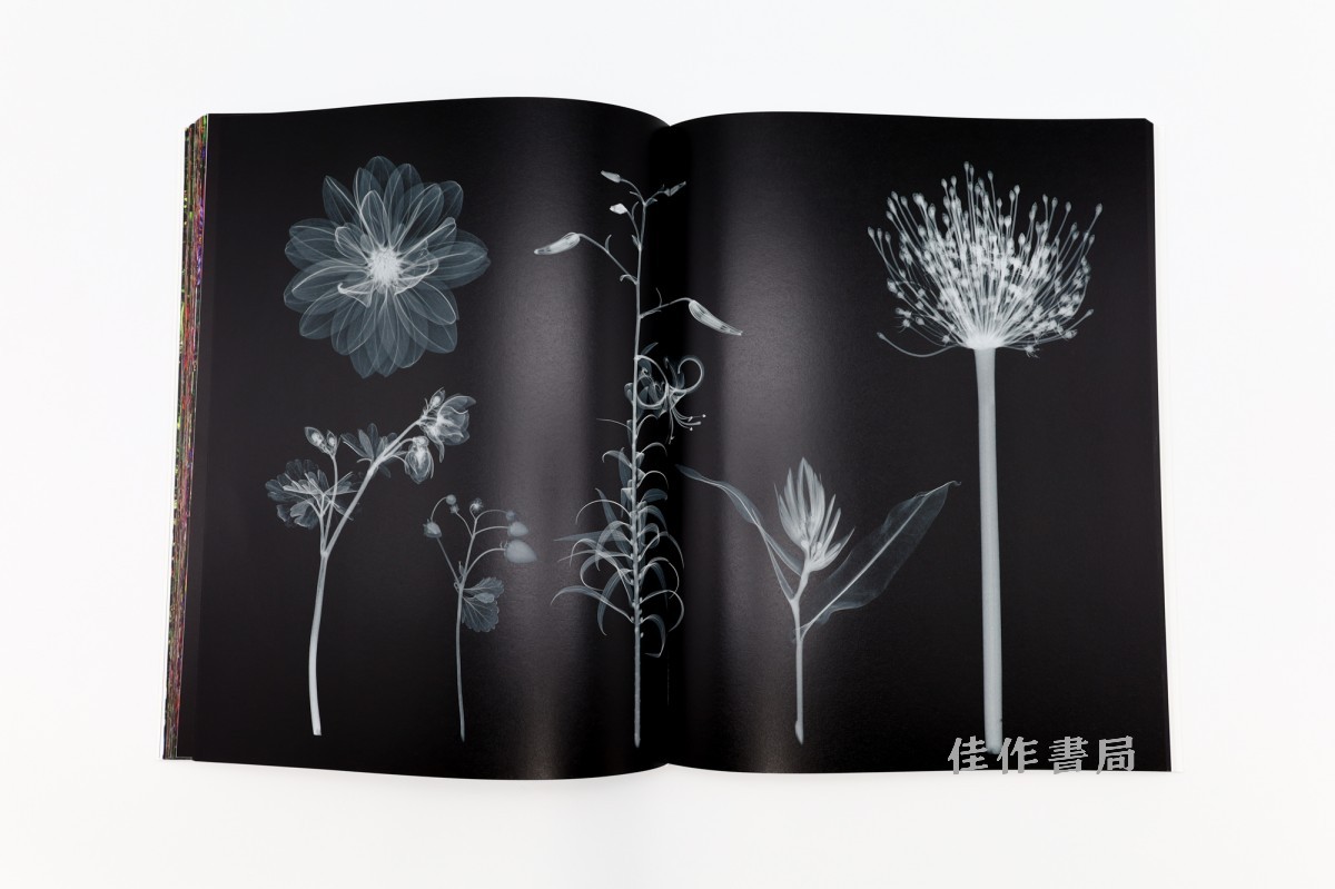 本书共收录四个系列、逾130张作品,包含两人从第一册开始便持续发展的核心计划《WHOLE》,将来自不同地域与品种的花草平等排列,展现植物的多样性与生命力;全新系列《BREATH》与《ORGAN》则透过摄影捕捉肉眼难以察觉的生物律动,揭示植物的呼吸与内部构造;《INCUNABLA》系列则以数字花束的形式存在于虚拟空间,挑战实体与虚拟之间的界线。书末另附各作品中植物的详细清单与花名索引。