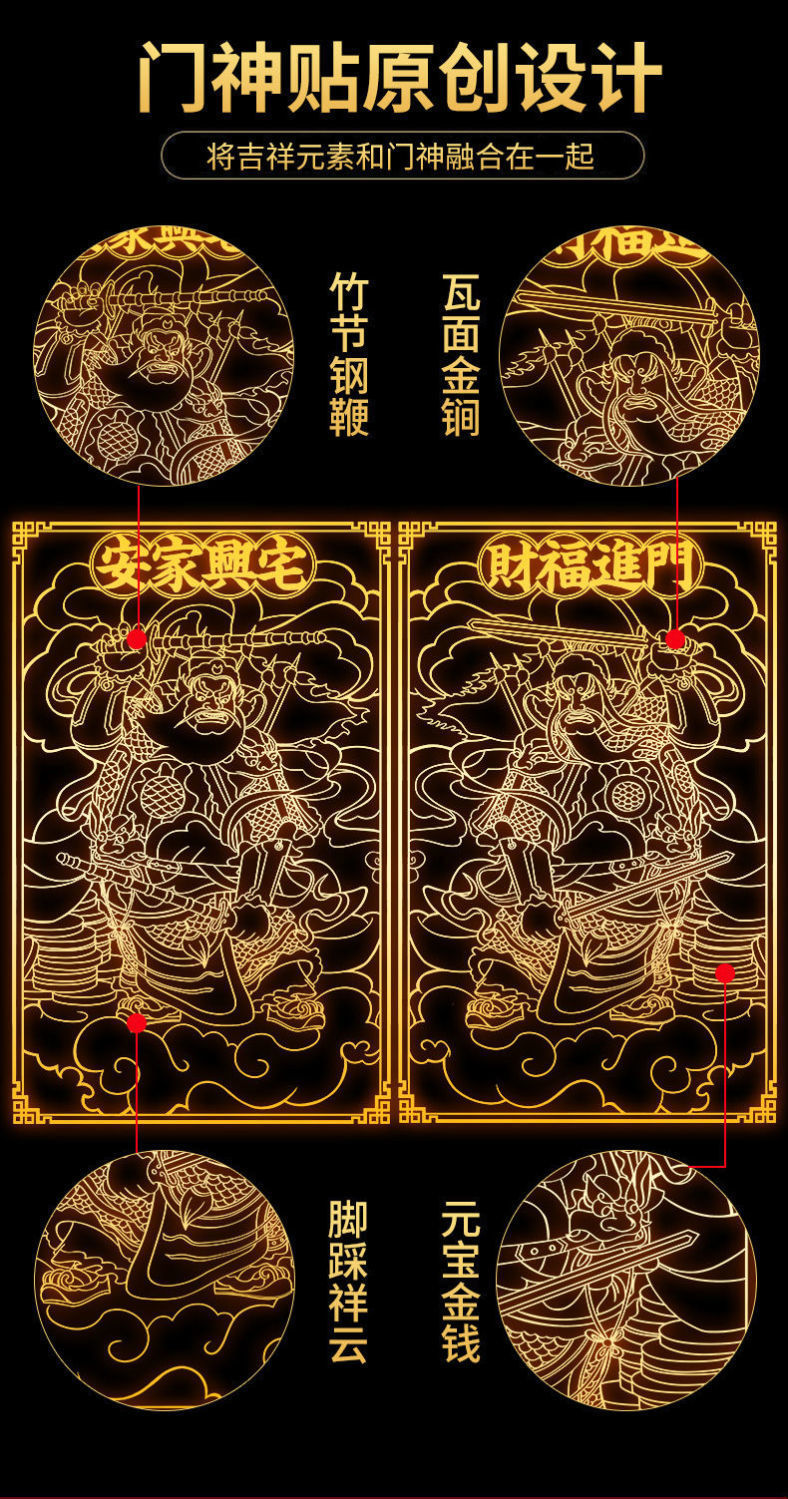 门神贴隐形门神门贴金属门贴化解门对门自粘门神金属贴小门神贴
